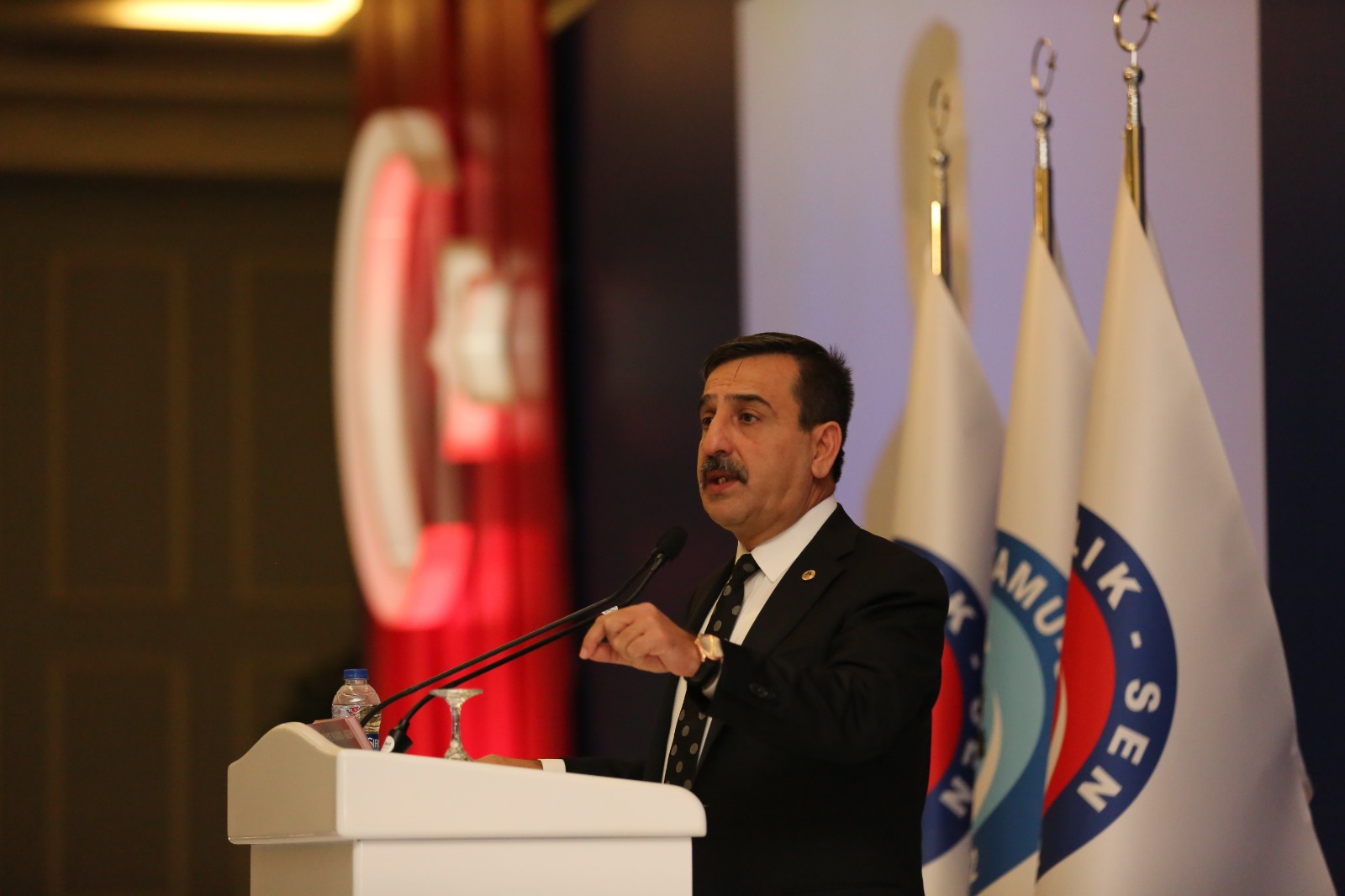Açılışın ardından kürsüye gelen Genel Başkanımız Önder Kahveci sözlerine Mehmetçiği selamlayarak başladı. Mehmetçiğin yanında gönüllü sefere çıkan Sağlık çalışanlarının da her türlü övgüyü hak ettiğini belirten Kahveci, Türkiye Kamu-Sen olarak her zaman ve şartta Kahraman Türk Ordusunun yanında olduklarını bunu barış Pınarı Harekatında bir kez daha gösterdiklerini belirtti.