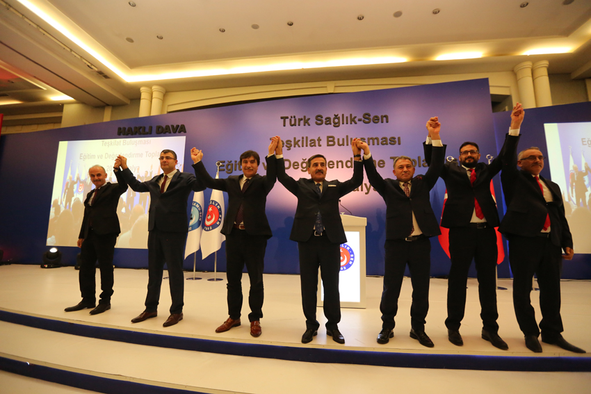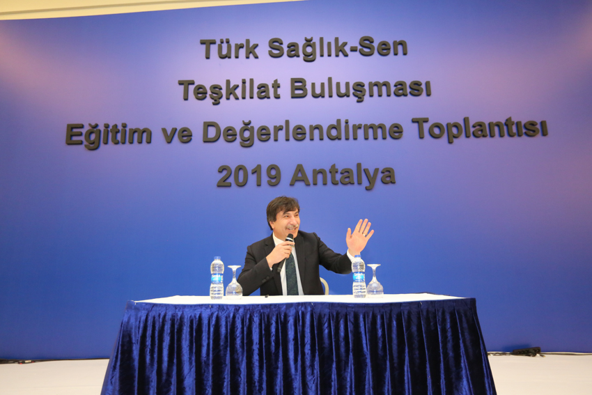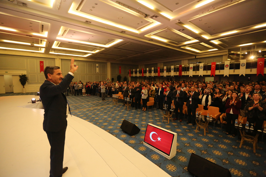 Türkiye Kamu-Senlilerin her güçlüğü aşacaklarına inandığını belirten Genel Başkanımız Önder Kahveci “ Şartla zor olabilir. İdarecilerin baskısı, değişik güç odalarının yaptıkları var. Bunu 20 yıldır yaşıyorsunuz. Ben size güveniyorum. O engelleri aşacaksınız buna inanıyorum. Sahaya ineceğiz doğru kararlı ve sendikacılığın nasıl yapıldığın göstereceğiz. Yetkiyi söke söke alacağız. Neden yetki diye ısrar ediyorum. Çünkü bu yetki beceriksizlerin eline kalmasın bunlardan memura hayır gelmez. 5 toplu sözleşme yaptılar 5’ide hüsran. Siz alacaksınız bu yetkiyi ben ona inanıyorum. Yürekli insanlar arkasında hiç kimse olmadan kendi güçleri ile bunu başaracaklar. Çünkü bizim için Allah Var Gam Yok. Unutmayın Türkiye Kamu-Sen, Türk Sağlık-Sen bayraktır. Bir kere yükselen bayrak bir daha inmez bayrak size emanettir emanete sahip çıkın.” şeklinde konuştu.