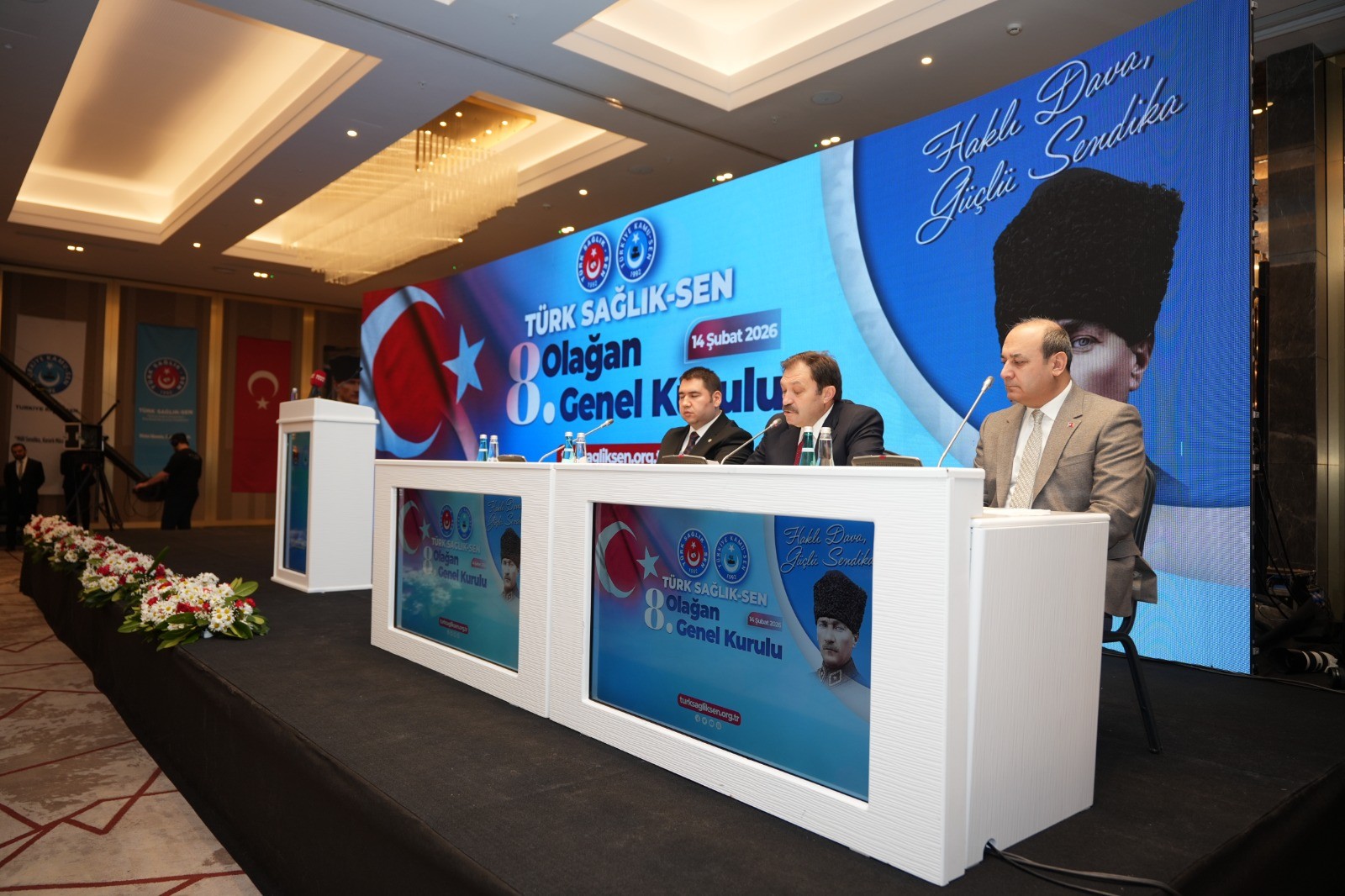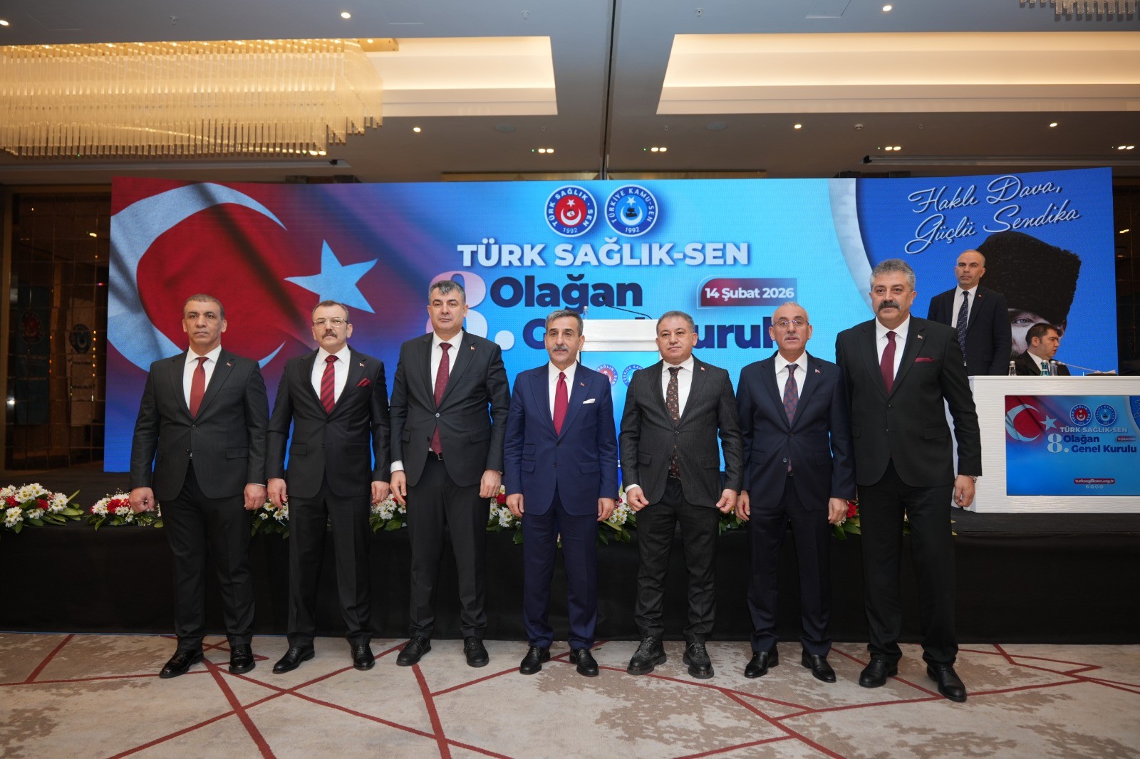 Türk Sağlık-Sen’in 8. Olağan Genel Kurulu, büyük bir coşku ve birliktelik içerisinde 14 Şubat 2026 tarihinde gerçekleştirildi. Genel Başkanımız Önder Kahveci güven tazeleyerek yeniden Genel başkanlığa seçildi.