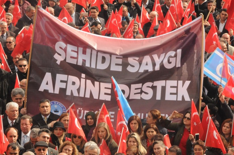Türk milleti bugün 80 milyon tek yürek, tek bilek kahraman Mehmetçikle birlikte Afrin’e yürümeye hazırdır.
