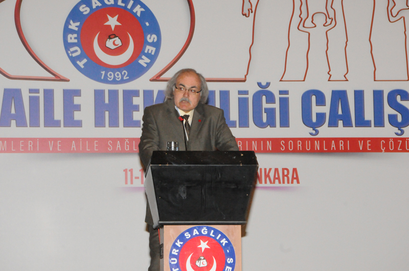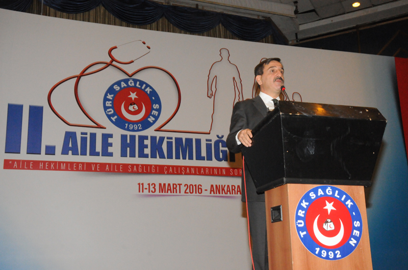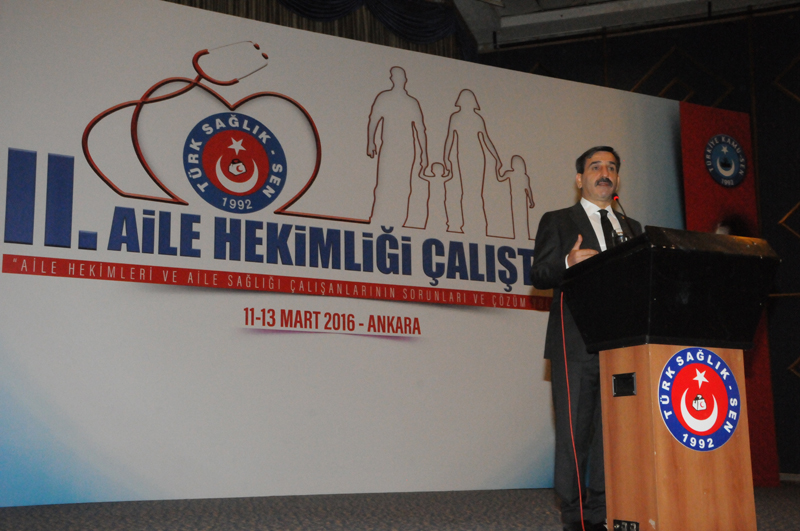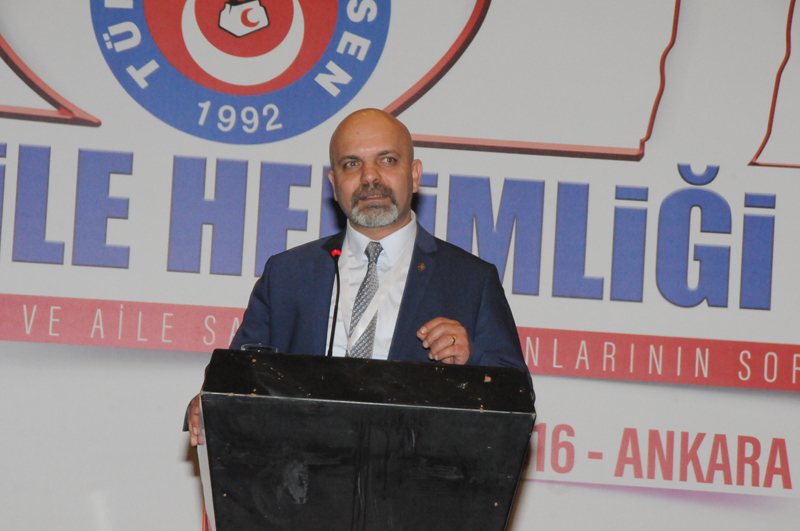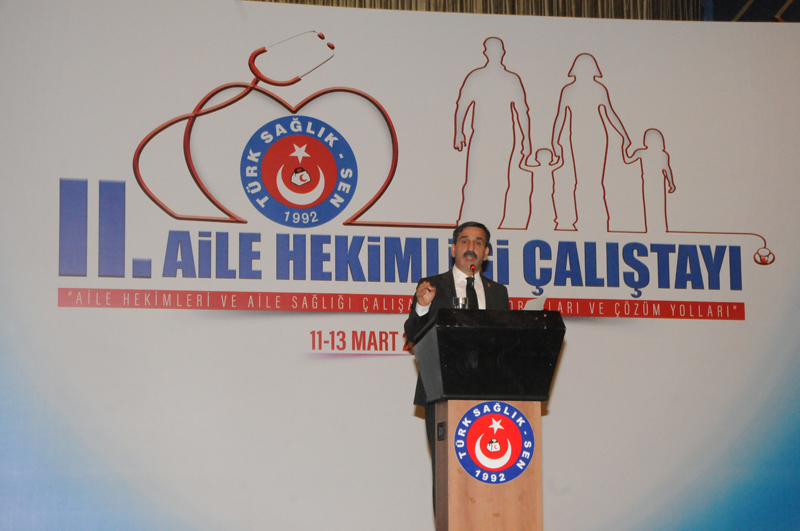 Aile hekimliğinde yoğun iş yüküne dikkat çeken Genel Başkanımız Önder Kahveci “ Aile hekimliğinde 41 bin arkadaşımız hizmet üretiyor. Bir aile hekimine ortalama 3 bin 621 kişi düşüyor. Avrupa’da ise bir aile hekimine 1500 kişi düşmekte. AB ortalaması olan 1500 hastayı yakalamak için bugün itibariyle 31 Bin Aile Hekimine ihtiyaç var. Aile Hekimlerinin 200’den Fazla Görevi Var. Aile hekimlerinin %47'si haftada 200'den fazla hasta görüyor, haftada 300'den fazla hasta gören aile hekimleri ise %28'lik bir orana sahip. 2014 yılında aile hekimliğinde yapılan muayene sayısı 238 milyon 561 bin. Sadece bu rakamlar bile iş yükünün nasıl bir boyutta olduğunu anlatmaya yeterlidir. Cumartesi nöbetleriyle de bu durumu katlanılmaz bir hale dönüştürdüler. ' dedi