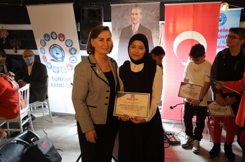 Genel Başkanımızın konuşmasının ardından kategorilerde dereceye giren öğrencilerimize Genel Başkanımız Önder Kahveci, Genel Sekreterimiz ve Türk Eğitim-Sen Genel Başkanımız Talip Geylan, Genel Başkan Yardımcımız ve Türk Haber-Sen Genel Başkanımız Yücel Kazancıoğlu, Genel Başkan Yardımcımız ve Türk Enerji-Sen Genel Başkanımız Şuayip Deniz Demir, Kamu-Sen Yönetim Kurulu üyemiz Kadir Şahin, Kadın Komisyonu Başkanımız Leyla Polat, Türk Kadın Hareketi Derneği Genel Başkanı Mine Bayram öğrencilerimize ödüllerini ayrı ayrı takdim ettiler.