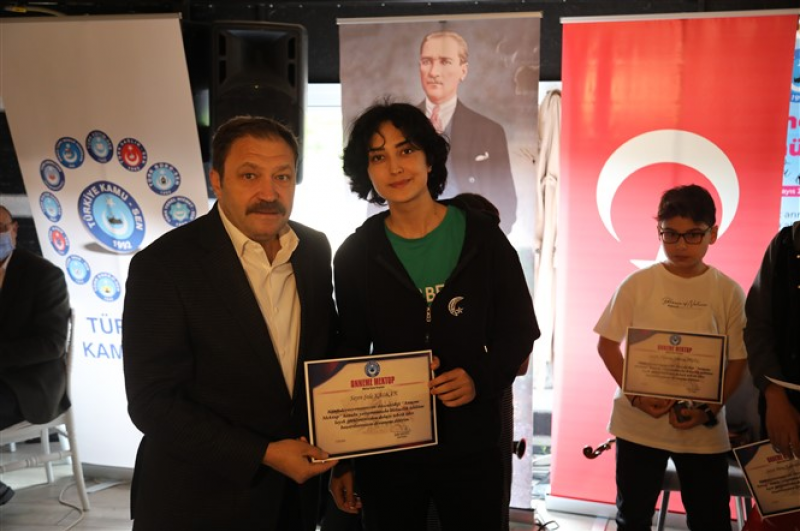 Orta Okul kategorisinde Osmaniye’den Mansiyon ödülüne layık görülen ancak mazereti nedeniyle katılamayan Ecrin Ala’ya ise ödülü Genel Başkanımız Önder Kahveci adına İl Temsilcimiz Fatih Üstüner tarafından takdim edildi.