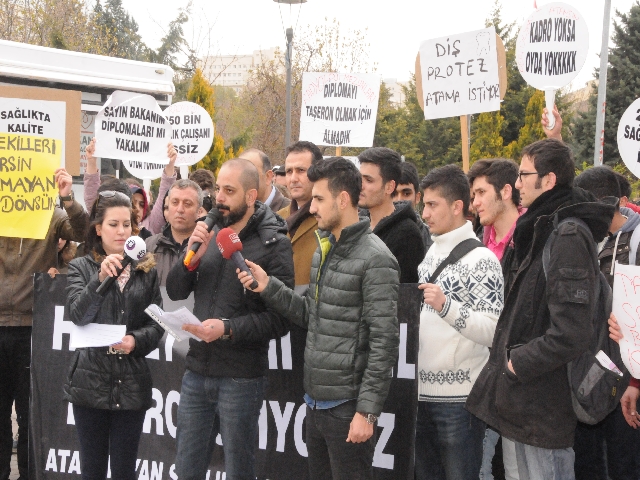 Hacettepe Üniversitesi Hastanesi önünde bir araya gelen atanamayan sağlık çalışanı platformu üyeleri Abdi İpekçi Parkına kadar, “Atanmak istiyoruz ve Türkiye Uyuma Sağlıkçına Sahip Çık' sloganları ile yürüdüler.