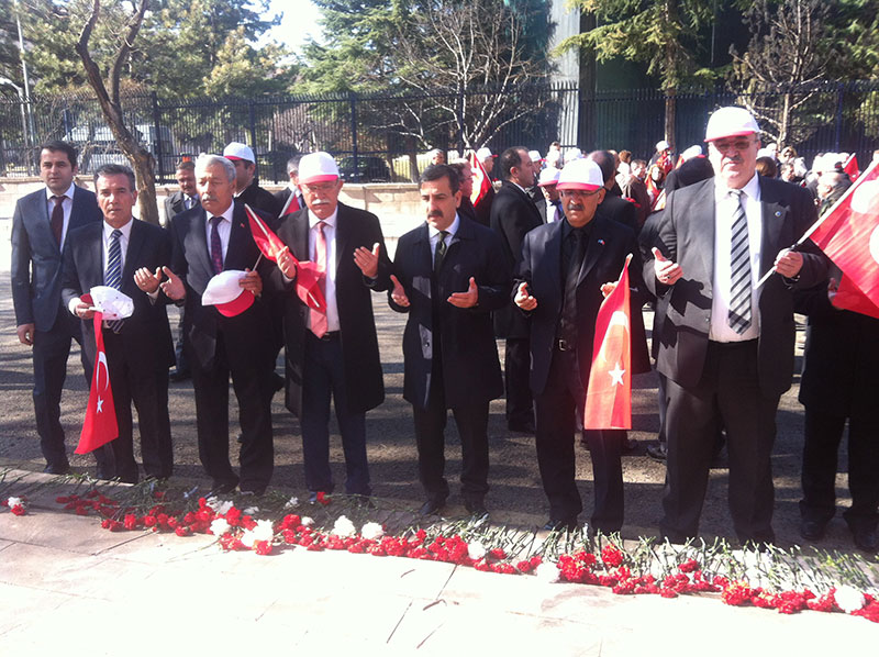 Türkiye Kamu-Sen Genel Başkan İsmail Koncuk, Türk Sağlık-Sen Genel Başkanı Önder Kahveci, Türk Büro-Sen Genel Başkanı Fahrettin Yokuş, Türk Diyanet Vakıf-Sen Genel Başkanı Hazım Zeki Sergi, Türk İmar-Sen Genel Başkanı Necati Alsancak, Türk Enerji-Sen Genel Başkanı Mehmet Özer Türk Tarım Orman-Sen Genel Başkanı Ahmet Demirci ve Türk Ulaşım-Sen Genel Başkanı Şerafeddin Deniz’in de hazır bulunduğu anma töreni için Karayolları Genel Müdürlüğü önünde toplanan kalabalık ellerindeki Türk bayrakları ile sessiz yürüyüşle patlamanın yaşandığı Merasim sokak girişine karanfil bıraktı.