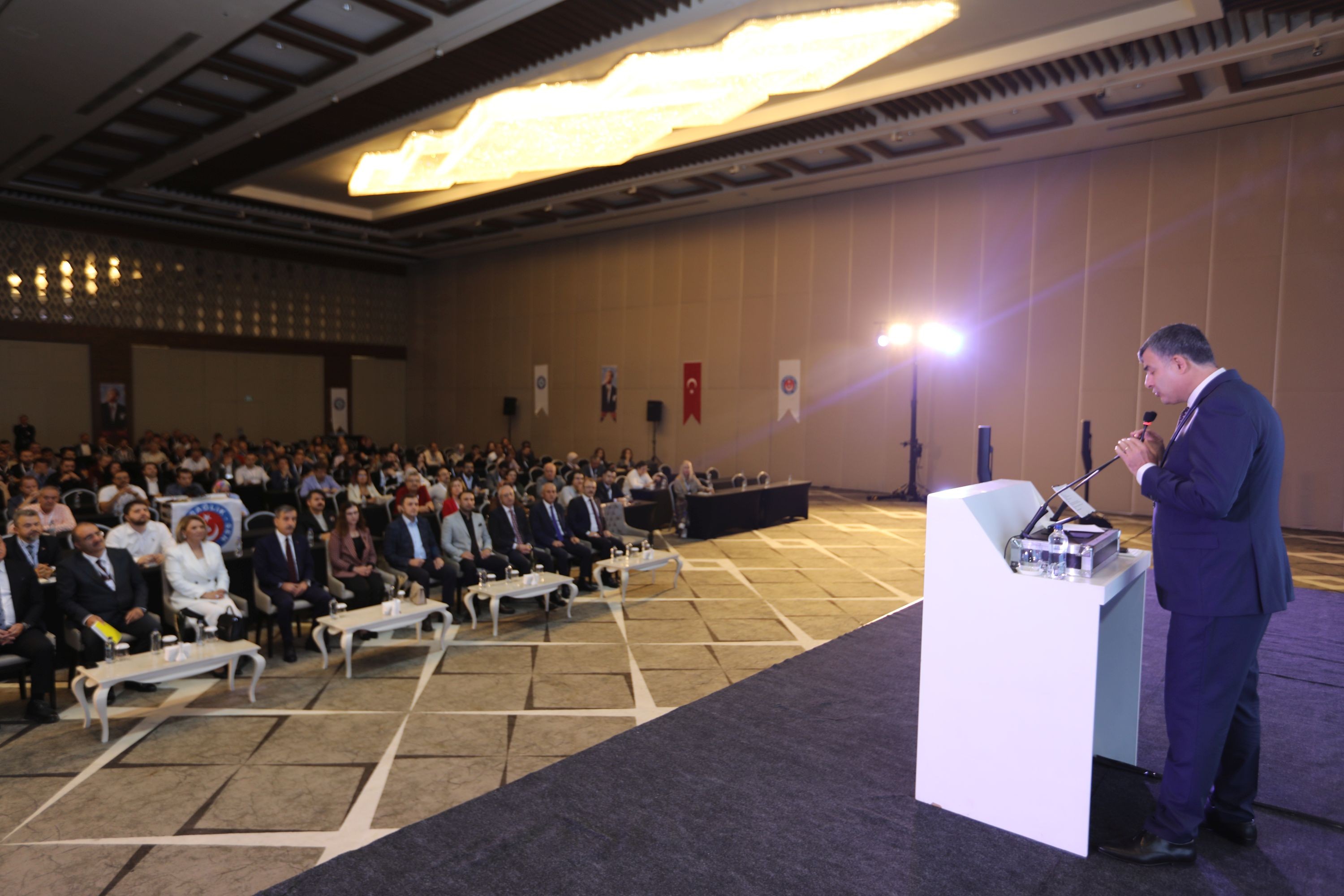 Türk hekimlerinin meselelerine vakıf olduklarını dile getiren Genel başkan Önder kahveci “ Hekimlerimizin saygınlığı yükseltmek hepimizin görevidir. Bunun içinde sorunlarını çözmeliyiz. Türkiye’de görev yapan 221 Bin hekimimizin bizden beklentileri var. Bugün Türkiye’de 100 Bin kişiye düşen doktor sayısı 239 iken OECD ortalaması ise 337’dir. 2024 yılında; Toplam 1 milyar 47 milyon 877 bin 901 hekime müracaat gerçekleşti. Kişi başı hekime müracaat yılda 12’nin üzerine çıkmış. Bu iş yoğunluğuna çare bulunması sağlık politikalarının iş yükünü azaltmak üzerine kurgulanması zorunludur. Şiddetin çözümü adına tüm sağlık kurum ve kuruluşlarının sıfır toleranslı alan ilan edilmesi önerimiz süratle hayata geçirilmelidir. Sözleşmeli yöneticilik denen ucube sistem kaldırılmalıdır.” dedi.