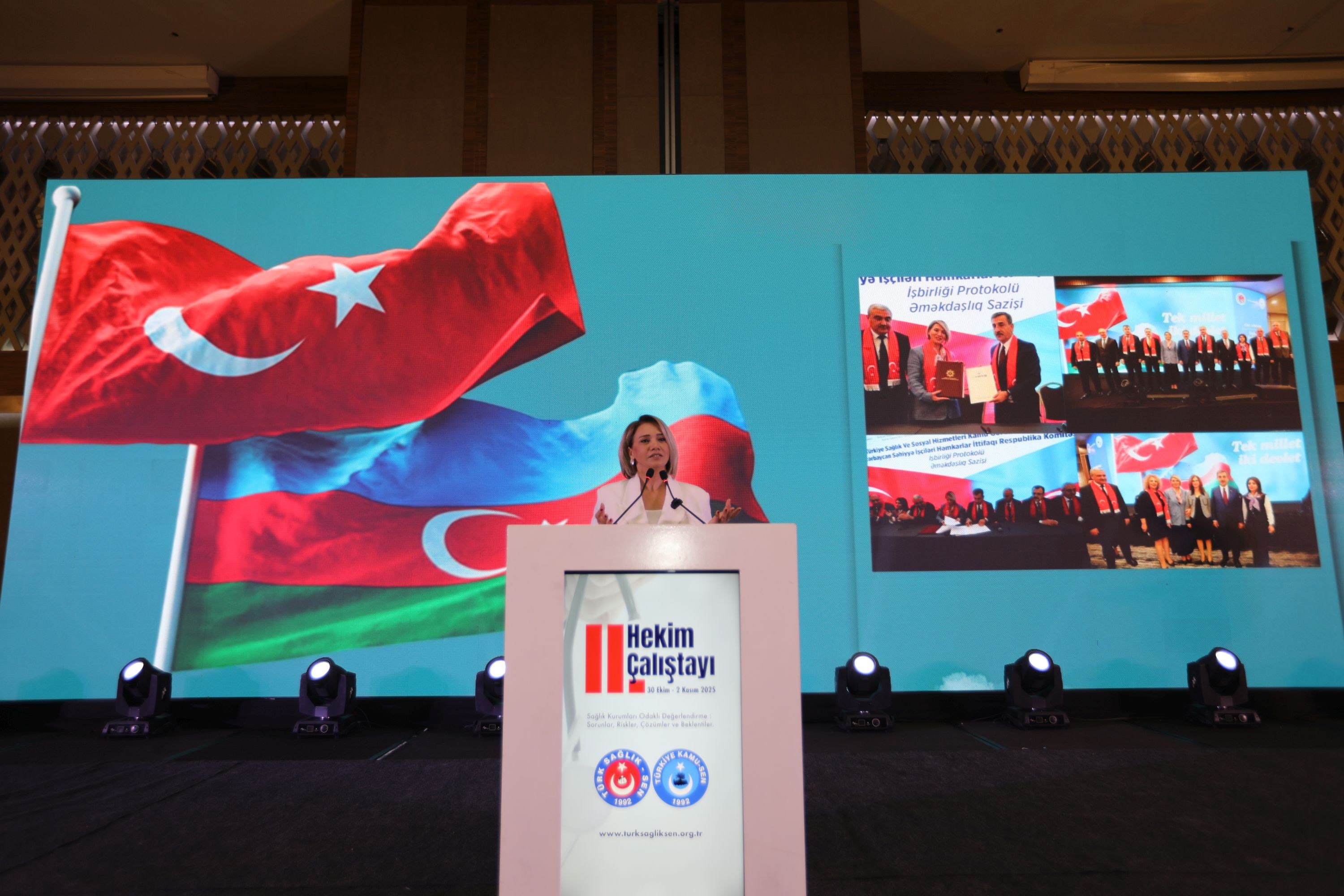 Çalıştaya ayrıca Azerbaycan Sıhhıye İşçileri Sendikası Genel Başkanı Sayın Dr. Elnara Muradova ve Azerbaycanlı hekimlerden oluşan bir heyette katıldı.