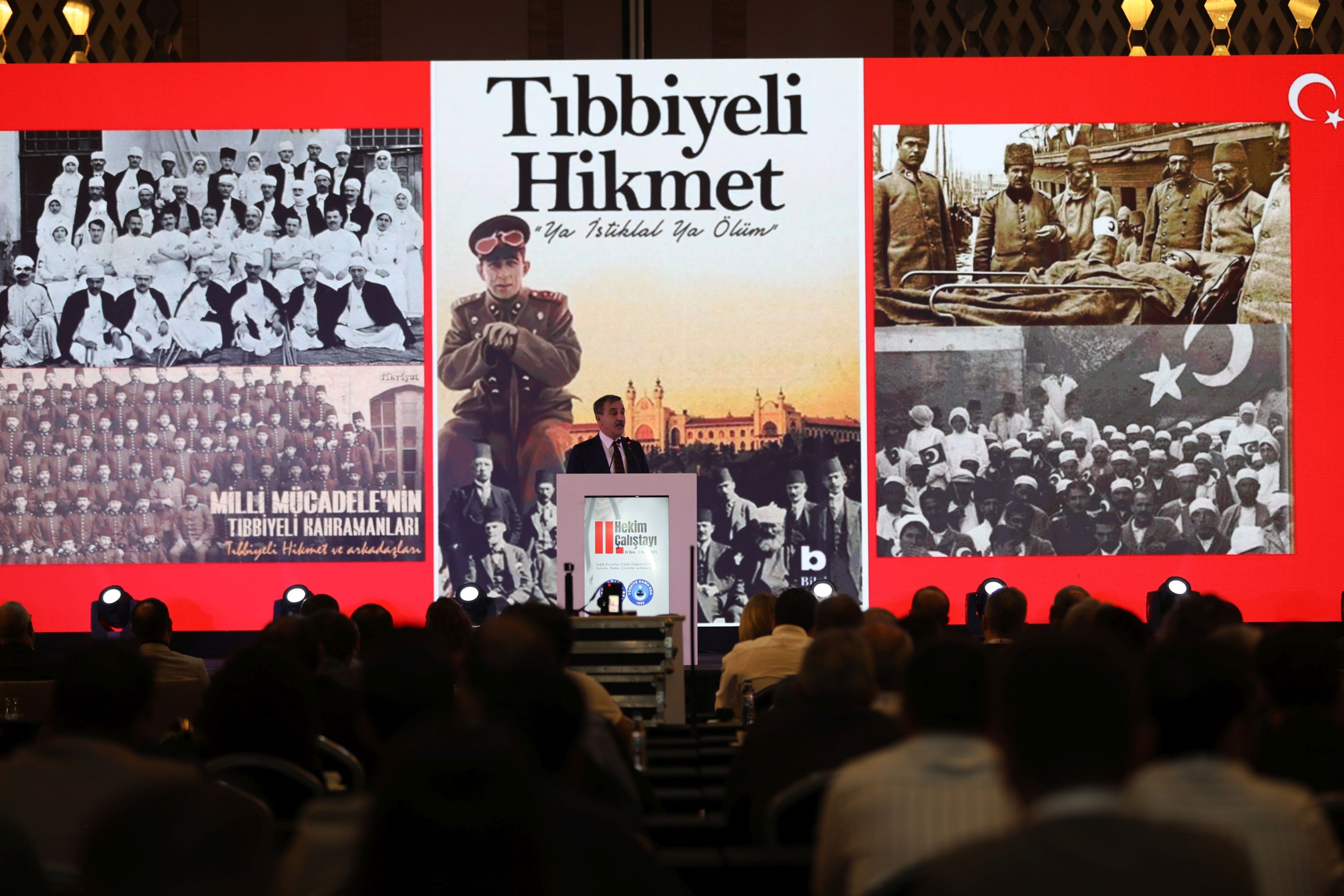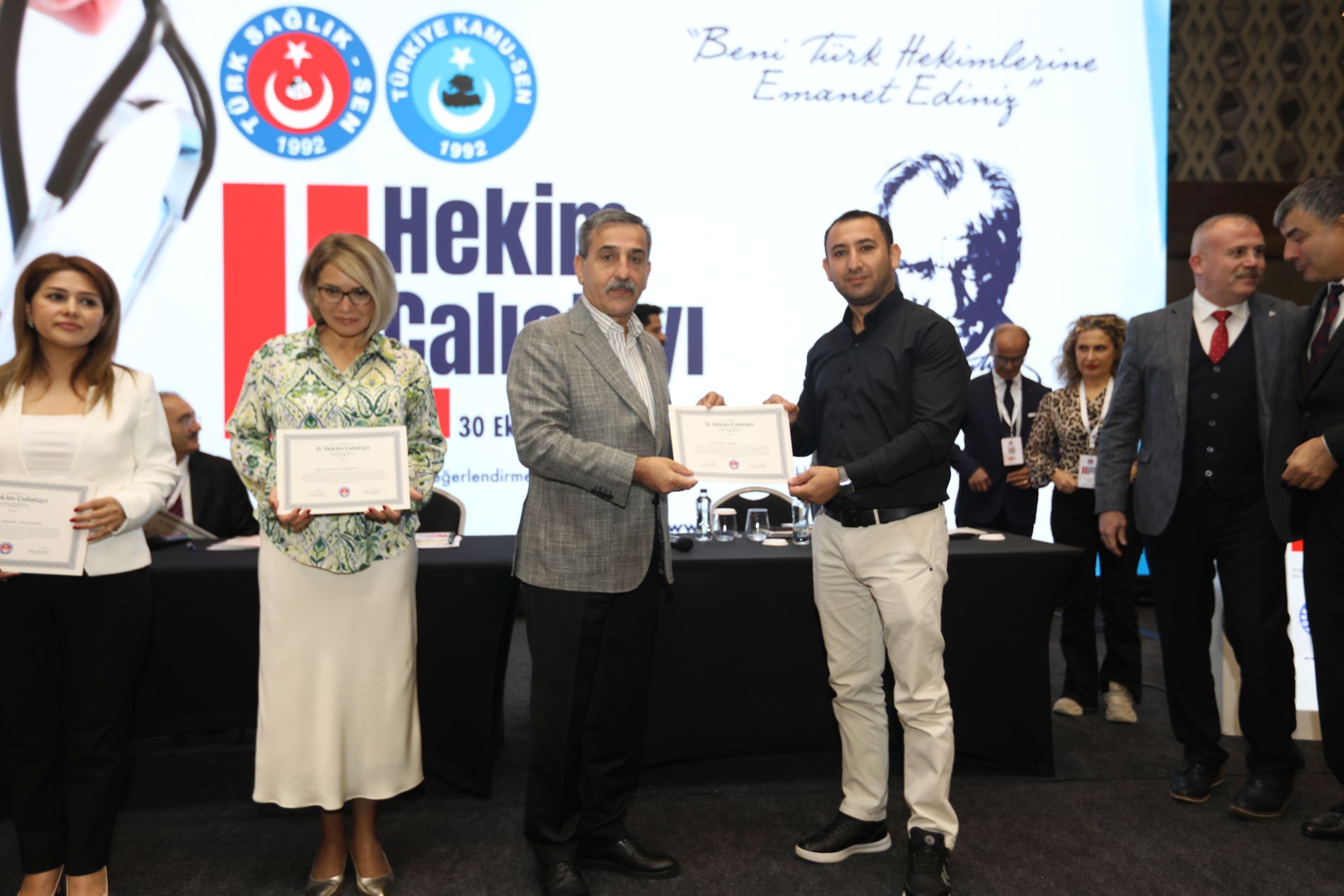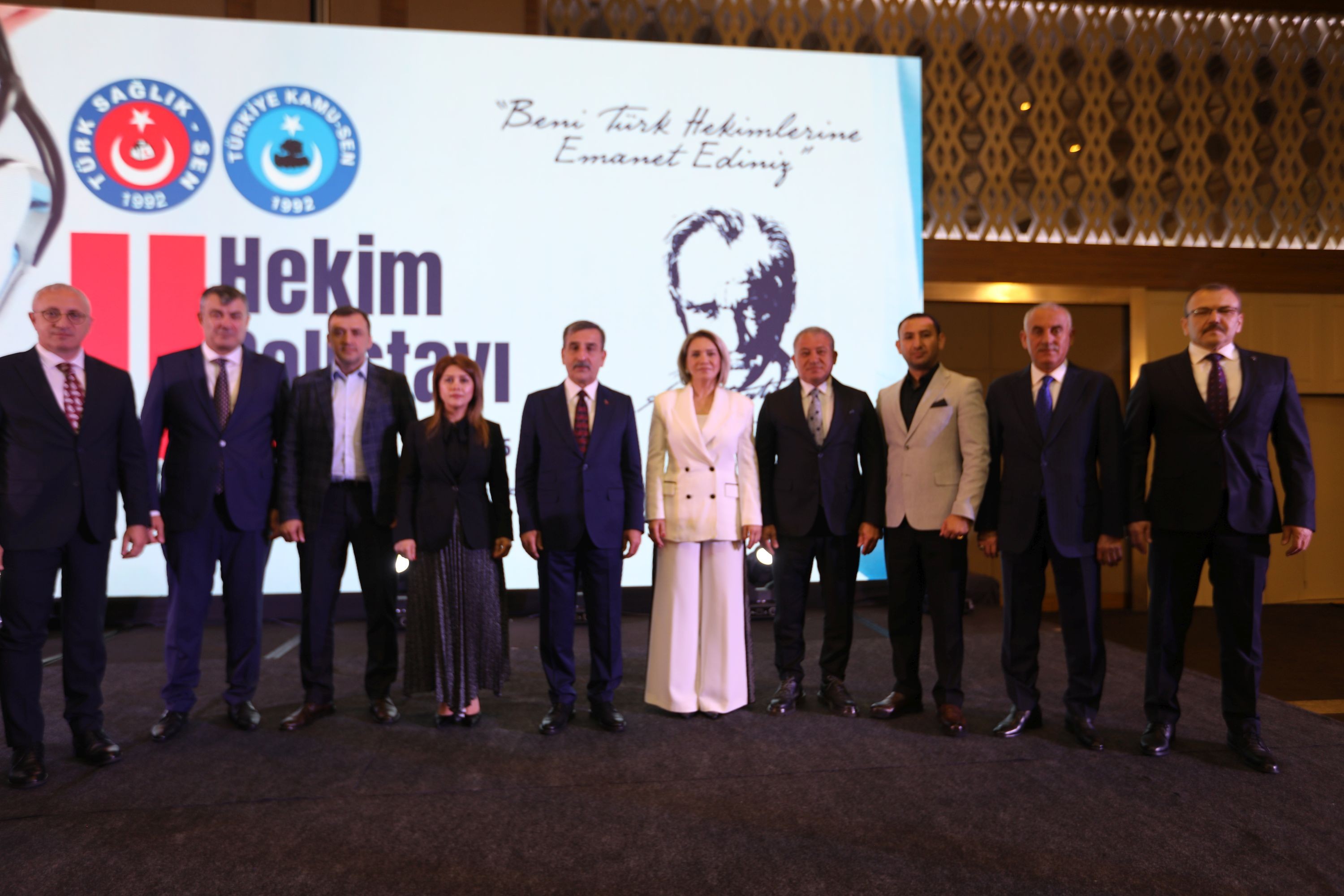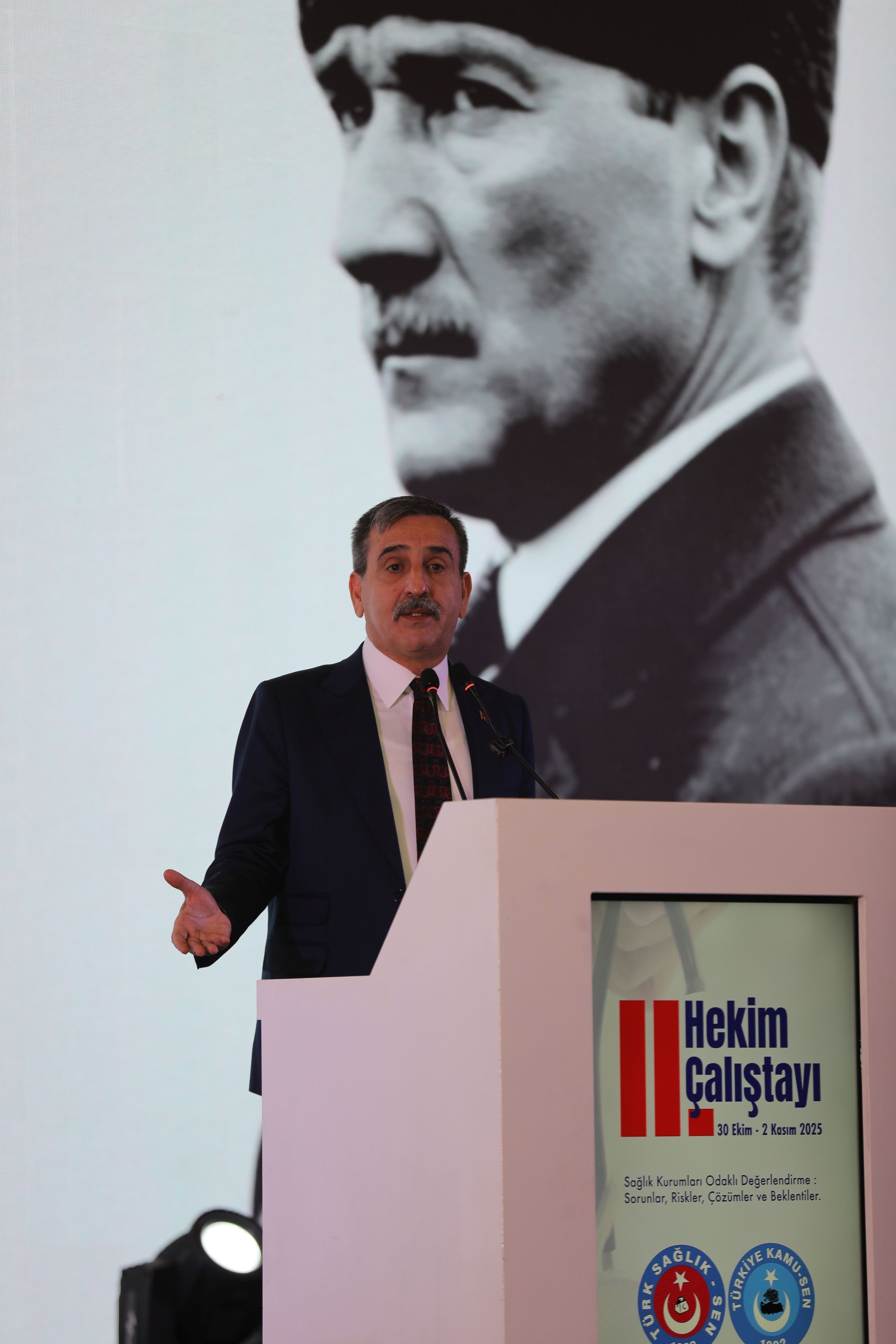 Konuşmaların ardından kürsüye gelen Türkiye Kamu-Sen ve Türk Sağlık-Sen Genel Başkanı Önder Kahveci sözlerine cumhuriyetin 102. Yılının kutlayarak başladı. Türk milleti ile cepheden cepheye koşan, bu uğurda mücadele eden Türk hekimlerine dikkat çeken Genel Başkan Önder Kahveci İstanbul’un işgaline tepki koyan, Temsilcileri Tıbbiyeli Hikmet’le Sivas Kongresinde tavır ortaya koyan tıbbiyelilerin duruşu, Tıbbiyeli Hikmet'in davasını ne ise bugünde Türk Sağlık-Sen’in davası O’dur Türk Hekimlerinin yayındayız. Türk hekimlerinin sendikası her zaman Türk Sağlık-Sen’dir.” dedi.