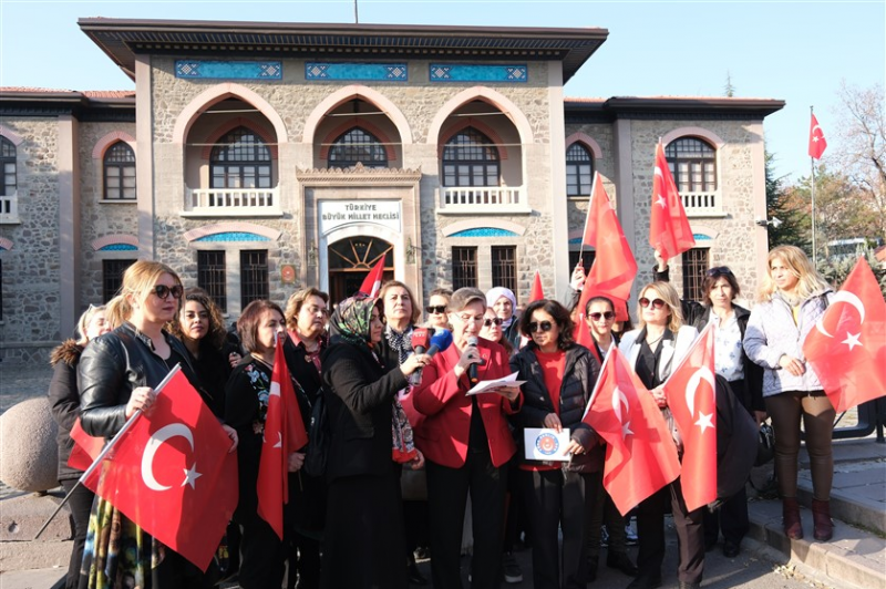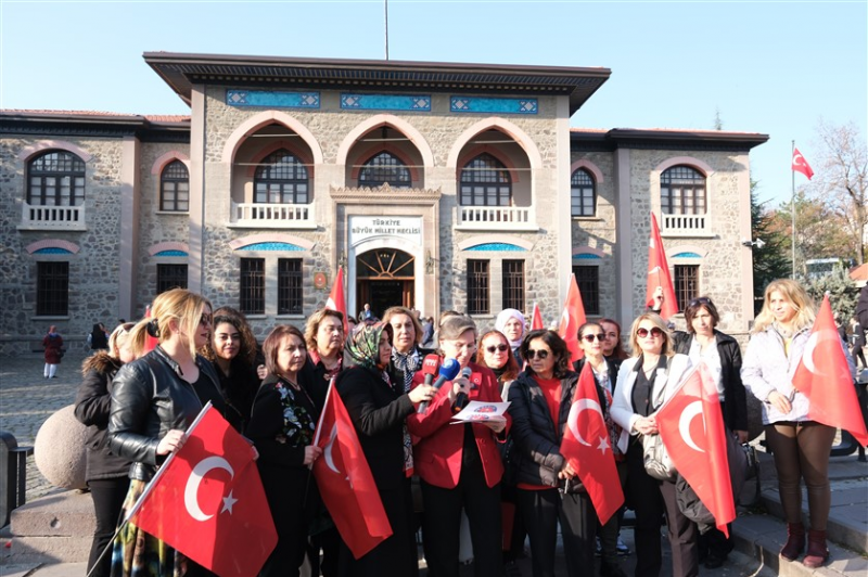 Daha sonra Ulus’ta bulunan ikinci TBMM Binası önünde basın açıklaması yapan Kadın Komisyonu Başkanımız Leyla Polat, “5 Aralık 1934 tarihinde Türk kadınına, hakların en büyüğü olan “Seçme ve Seçilme” hakkı tanınmıştır. Atatürk, Türk kadınının seçme ve seçilme hakkının verilmesinin ardından şöyle seslenmiştir: “Bu karar, Türk kadınına sosyal ve siyasî hayatta bütün milletlerin üstünde yer vermiştir. Çarşaf içinde, peçe altında ve kafes arkasındaki Türk kadınını artık tarihlerde aramak lazım gelecektir. Türk kadını, evdeki medenî mevkiini salahiyetle işgal etmiş, iş hayatının her safhasında muvaffakiyetler göstermiştir. Siyasî hayatla, belediye seçimleriyle tecrübe kazanan Türk kadını, bu sefer de milletvekili seçme ve seçilme suretiyle haklarının en büyüğünü elde etmiş bulunuyor. Medenî memleketlerin birçoğunda, kadından esirgenen bu hak, bugün Türk kadınının elindedir ve onu salahiyet ve liyakatle kullanacaktır”