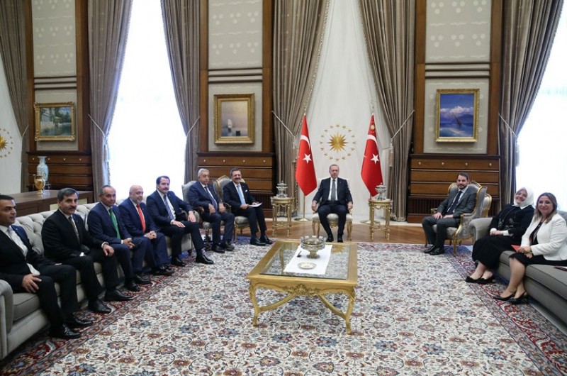 Cumhurbaşkanlığı Külliyesi'nde basına kapalı yapılan kabule, Hazine ve Maliye Bakanı Berat Albayrak, Ticaret Bakanı Ruhsar Pekcan ile Aile, Çalışma ve Sosyal Hizmetler Bakanı Zehra Zümrüt Selçuk da katıldı.