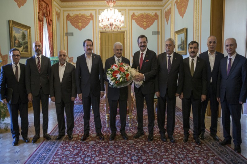 TBMM Başkanı Binali Yıldırım’a yapılan ziyarette Genel Başkanımız Önder Kahveci ile birlikte, TOBB Başkanı Rıfat Hisarcıklıoğlu, TESK Genel Başkanı Bendevi Palandöken, TÜRK-İŞ Genel Başkanı Ergün Atalay, HAK-İŞ Genel Başkanı Mahmut Arslan, MEMUR-SEN Genel Başkanı Ali Yalçın, Türkiye KAMU-SEN Genel Başkanı Önder Kahveci, TZOB Genel Sekreteri Hasan Hüseyin Coşkun, TİSK Genel Sekreteri Akansel Koç ve Türkiye-AB Karma İstişare Komitesi Türkiye Kanadı Sekreteri Mustafa Bayburtlu yer aldı.
