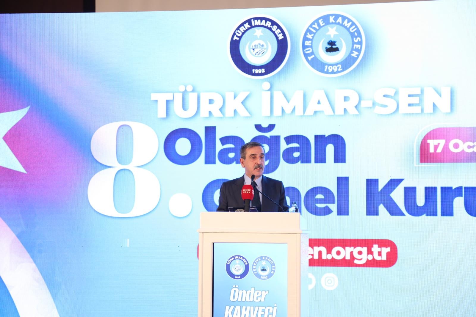 Kahveci; “Türk İmar-Sen’in 8. Olağan Genel Kurulunun hayırlara vesile olmasını diliyorum. Türkiye Kamu-Sen büyük bir teşkilattır. Bu teşkilatın kurulmasına vesile olan başta değerli büyüğümüz ve kurucu genel başkanımız Ali Işıklar abimize teşekkür ediyorum. Biz kamu çalışanlarının hakları için mücadele eden, kurulduğu günden beri ilkelerinden ve duruşundan taviz vermeyen bir konfederasyonuz. Türkiye Kamu-Sen bugüne kadar olduğu gibi bundan sonradan çizgisinden sapmadan, ödün vermeden mücadelesine devam edecektir.