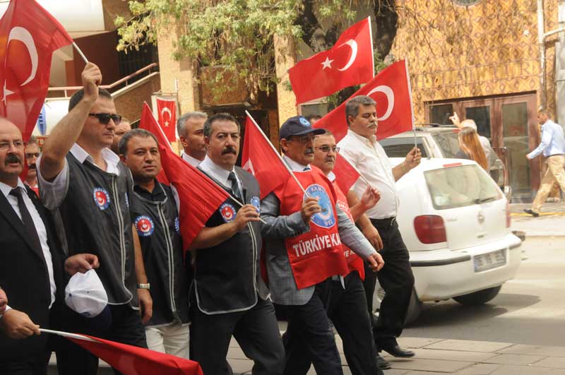 Ankara Hamamönü’nde toplanan sendikalarımızın Genel Başkanları, Genel Merkez Yöneticileri, Şube Başkanlarımız, üyelerimiz, Türkiye Kamu-Sen personeli ve çok sayıda vatandaşımız şehitlerimiz için okunan Kuran-ı Kerim tilavetinin ardından ellerine semaya kaldırarak şehitlerimiz için dualar etti.