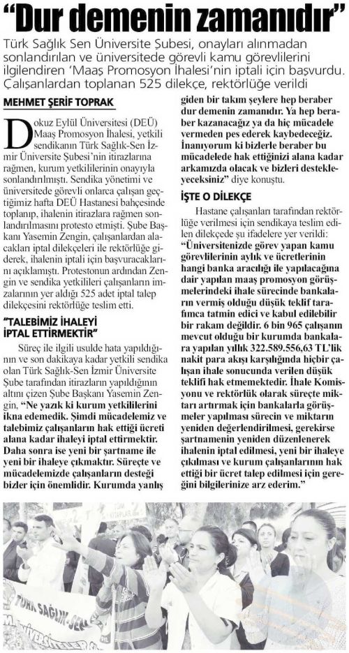 Dokuz Eylül Üniversitesi çalışanları adına yapılan maaş promosyonu ihalesinde alınan sonuç çalışanlar adına sendikamızı tatmin edici bir rakam olmamıştır. Kurum çalışanlarının daha iyi bir rakam hak ettiği aşikardır.