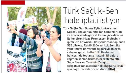 Bu nedenle sürece ve rakama çalışanlar adına sendikamızın itirazları olmuştur. İhalenin iptal edilmesi için başlatmış olduğumuz dilekçe kampanyasına çalışanlardan da yoğun destek gelmiştir.