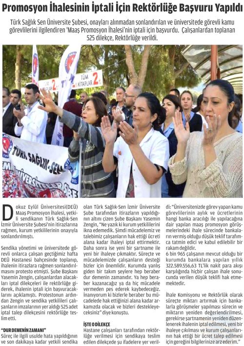 26.10.2015 günü Dokuz Eylül Yemekhane önünde ihalenin iptali için başlattığımız imza kampanyasında çalışanların imzasını aldığımız 525 dilekçeyi 28.10.2015 Çarşamba günü yaptığımız basın açıklamasının ardından Rektörlüğe sunduk.