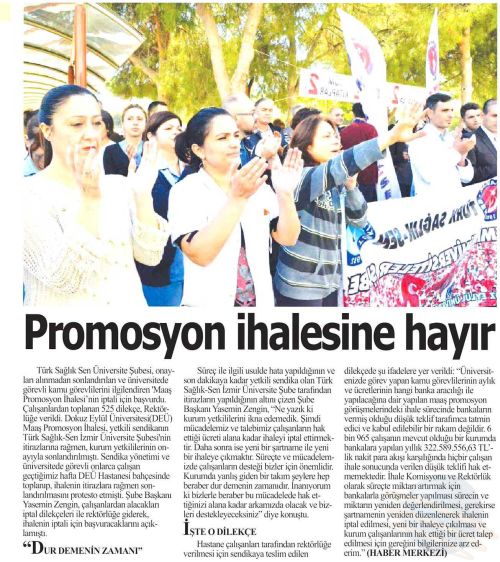 Umarız kurum yetkilileri hem sendikamızın, hem de çalışanların itirazlarını dikkate alır ve çalışanlar adına daha iyi bir promosyon ücreti almak için bizlerle beraber hareket eder.