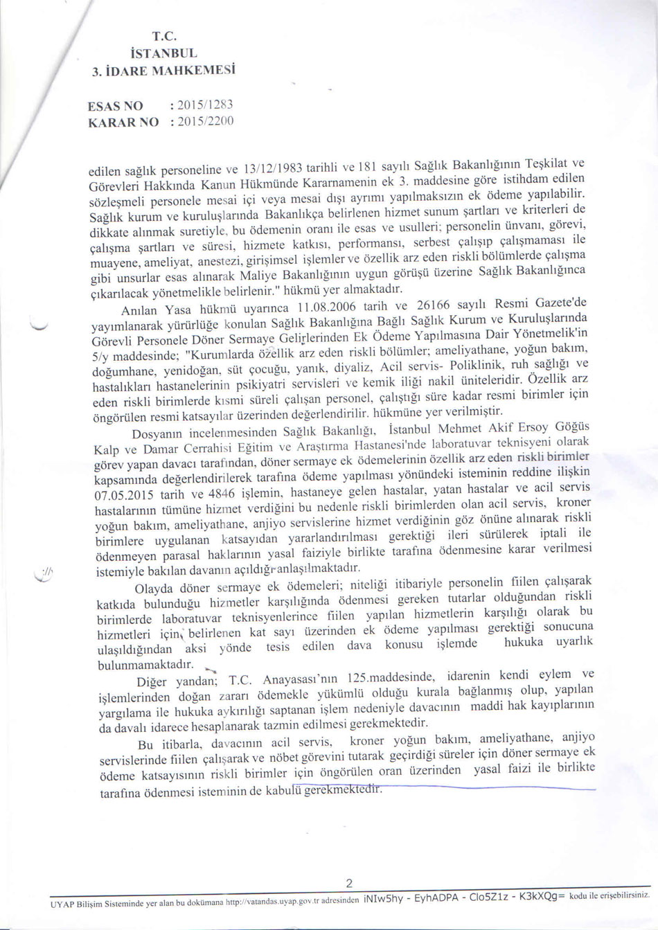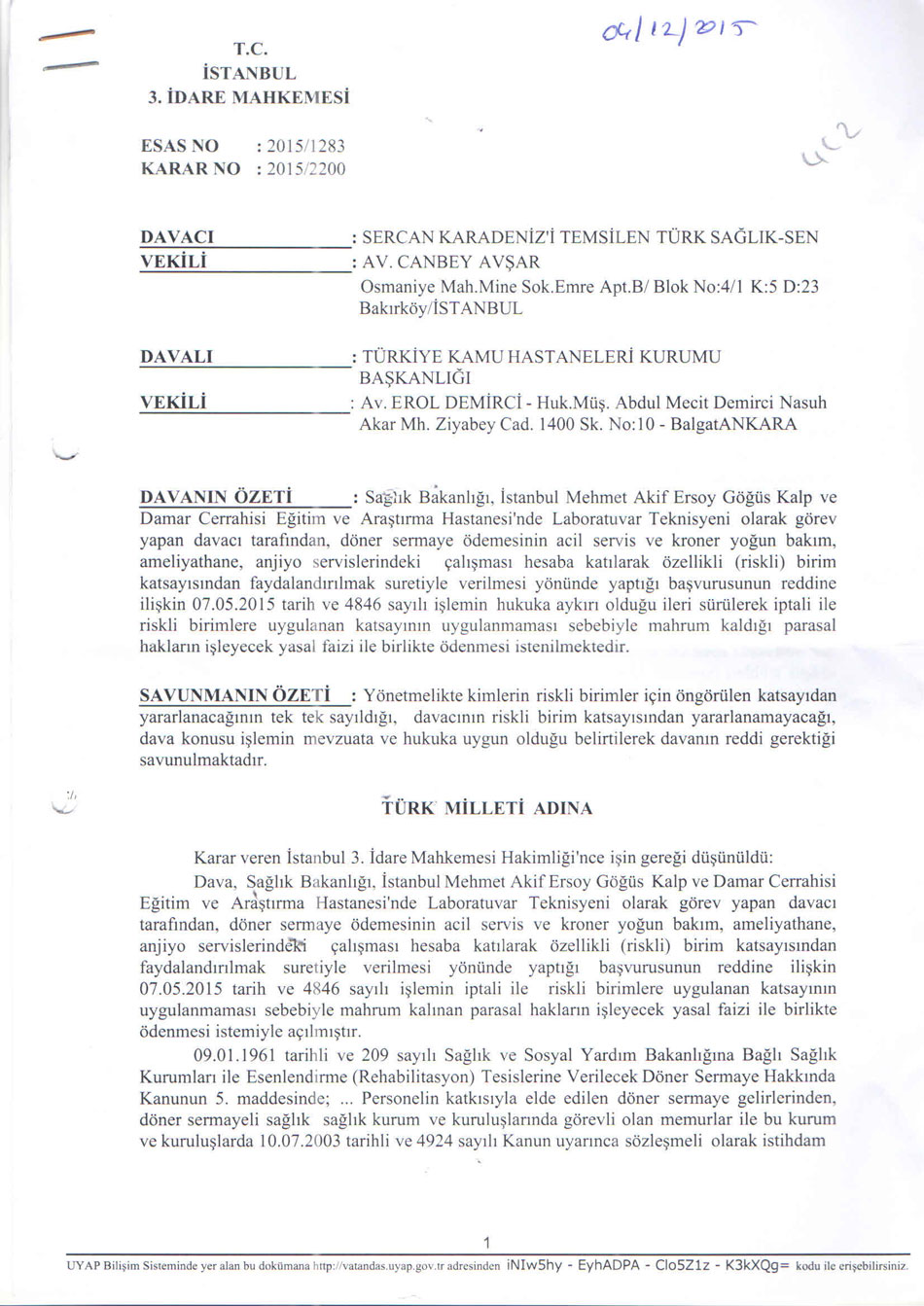 Mehmet Akif Ersoy Göğüs Kalp Damar Cerrahisi Eğitim ve Araştırma Hastanesi kan merkezinde çalışan üyemizin riskli birim katsayı davasını kazandık.