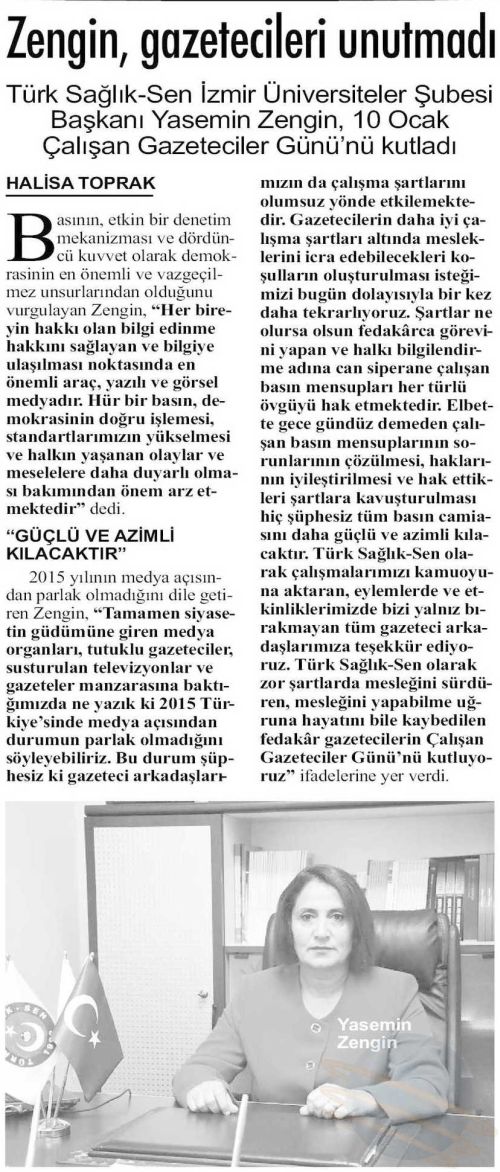 Şube Başkanımız Yasemin ZENGİN 10 Ocak Çalışan Gazeteciler günü nedeni ile bir basın açıklaması yaparak basın mensuplarımızın gününü kutladı.