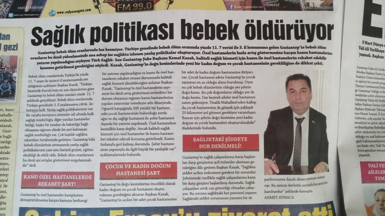 Gaziantep Şube Başkanımız Kemal KAZAK; Gaziantep’in sağlık politikaları hakkında Güneş gazetesine açıklamalarda bulundu.