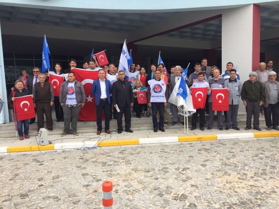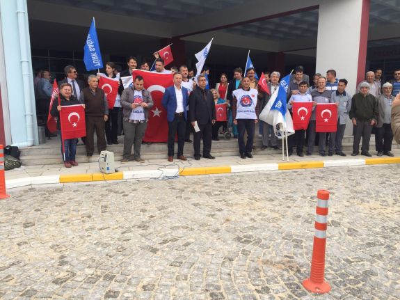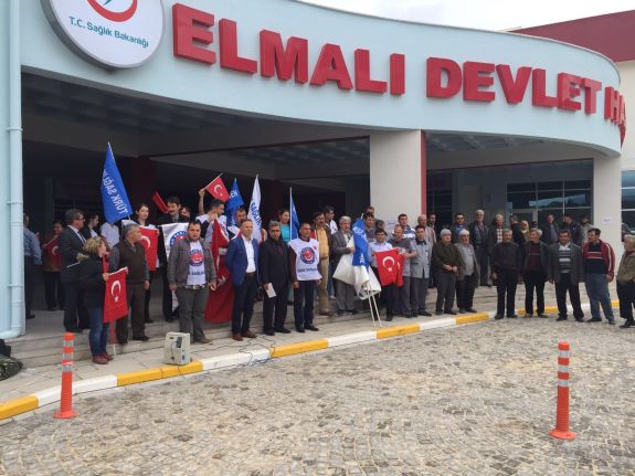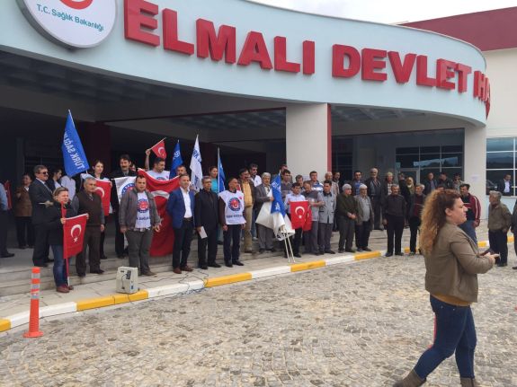 Elmalı devlet hastanesi bahçesinde yapılan basın açıklamasına çok sayıda hastane çalışanı katıldı