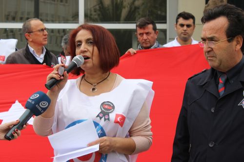 Aynı gün Dokuz Eylül Üniversite’sin de saat 12:30’da sendikamızın destek verdiği basın açıklaması gerçekleşti. Şube Başkanımız Yasemin ZENGİN’ in basın açıklama metni;