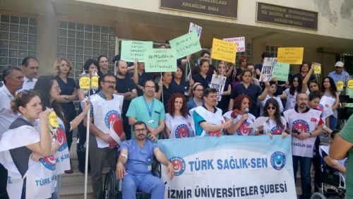 Ege Üniversitesi Hastanesi’nde uzun süredir yaşanan, hemşire eksikliği nedeni ile artan iş yükü ve nöbetler için Basın Açıklaması yaptık.