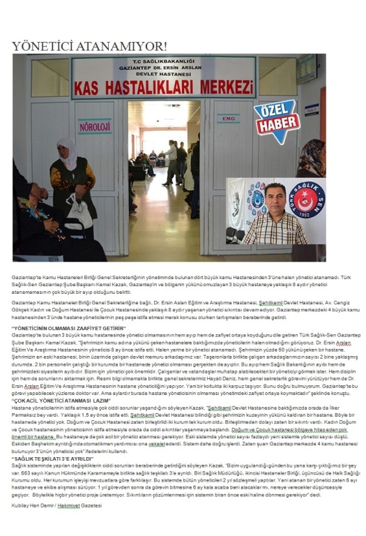 Türk Sağlık-Sen Gaziantep Şube Başkanı Kemal KAZAK, Hâkimiyet Gazetesinden Süleyman DOĞAN’a açıklamalarda bulundu.