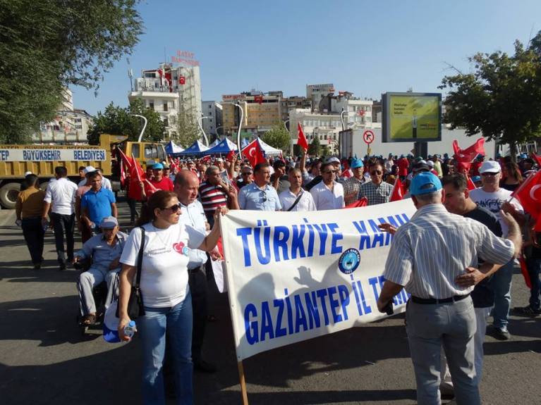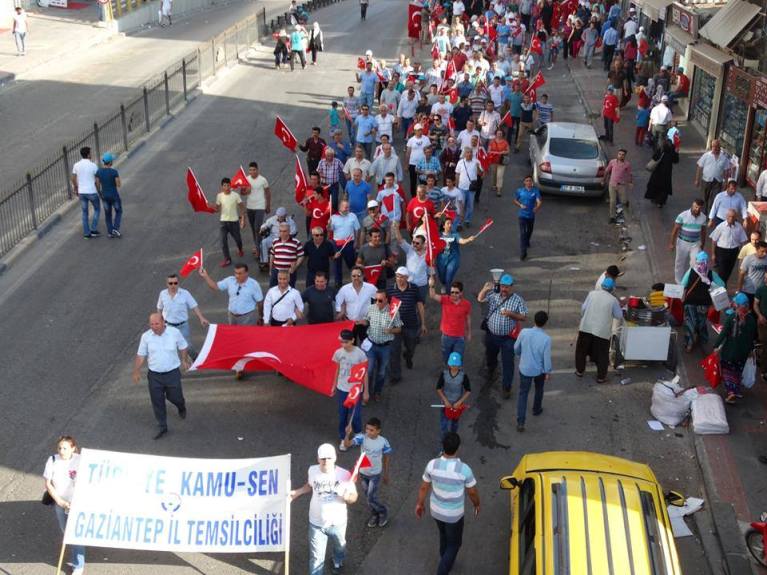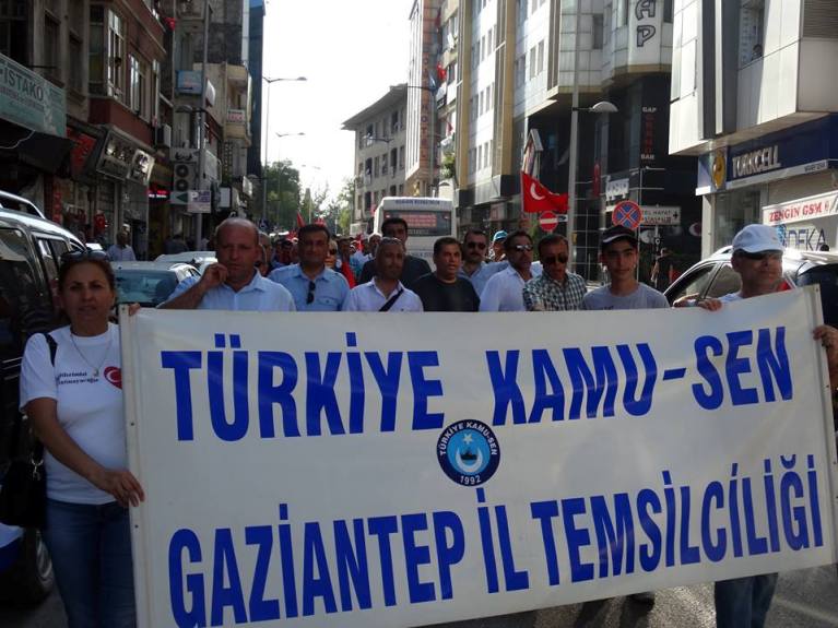 Türkiye Kamu-Sen Gaziantep İl Temsilciliği olarak; Gaziantep Valiliği tarafından tertiplenen “Demokrasi ve Şehitler” mitingine katılmak için Şehitler Abidesi önünde toplandık.