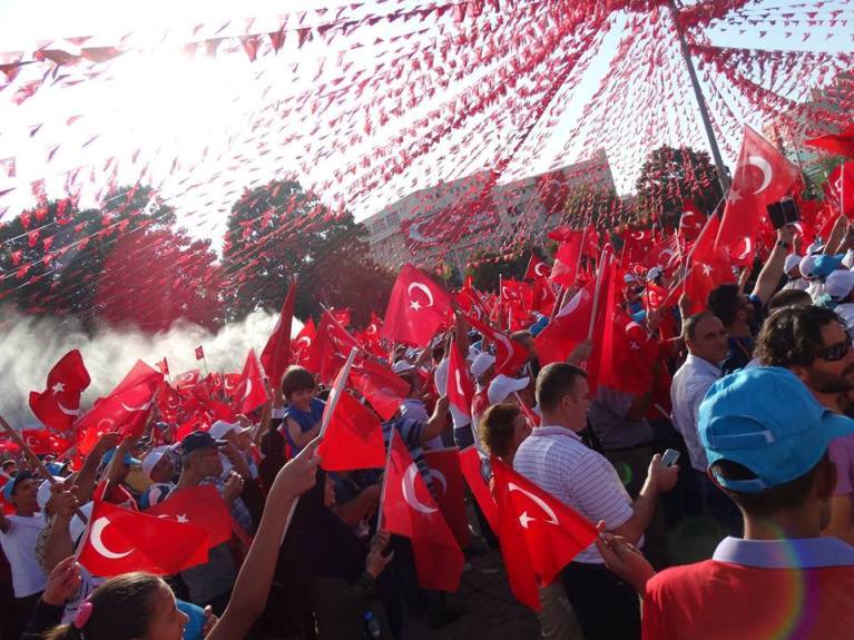 Yürüyüş korteji oluşturarak, “NE MUTLU TÜRKÜM DİYENE, VATAN SANA CANIM FEDA, TÜRKİYE SEVDAMIZ VATAN İÇİN KAVGAMIZ sloganları eşliğinde demokrasi meydanına yürüdük.