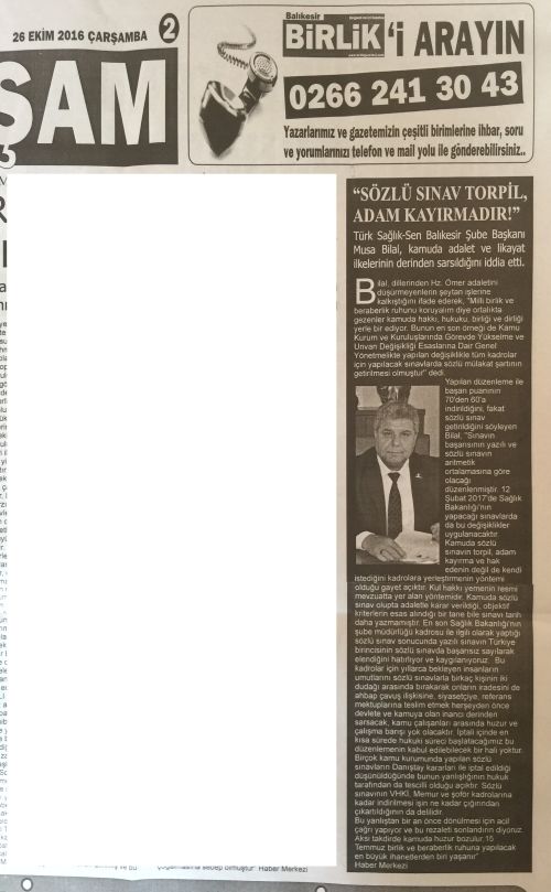 TÜRK SAĞLIK SEN BALIKESİR ŞUBE BAŞKANI