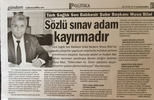 Kamuda sözlü sınavın torpil, adam kayırma ve hak edenin değil de kendi istediğini kadrolara yerleştirmenin yöntemi olduğu gayet açıktır. Kul hakkı yemenin resmi mevzuatta yer alan yöntemidir. Kamuda sözlü sınav olupta adaletle karar verildiği, objektif kriterlerin esas alındığı bir tane bile sınavı tarih daha yazmamıştır.