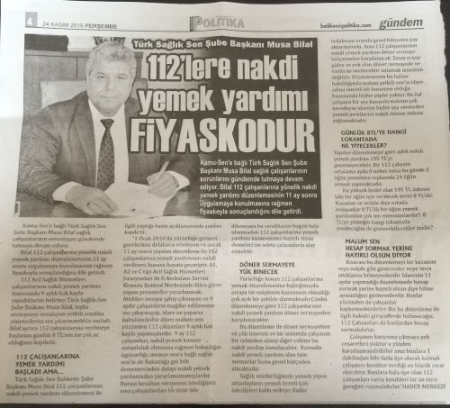Çünkü, düzenlemeye göre 112 çalışanlarının nakdi yemek yardımı döner sermayeden karşılanacaktır. Bu düzenleme ile döner sermayelere ek yük binecek ve bir anlamda çalışanın bir cebinden alınıp diğer cebine bu nakdi yardım konulacaktır. Kamuda nakdi yemek yardımı alan tüm memurlar bunu genel bütçeden almaktadır. Sağlık müdürlüğünde yemek yiyen arkadaşların yemek ücreti için ödedikleri katkı miktarı kadar belirlenen oranda genel bütçeden pay aktarılıyordu. Ama 112 çalışanlarının nakdi yemek yardımı döner sermaye bütçesinden karşılanacak. Zaten eriyip giden ve yok olan döner sermayede ne varda ne verilecektir anlamak mümkün değildir.