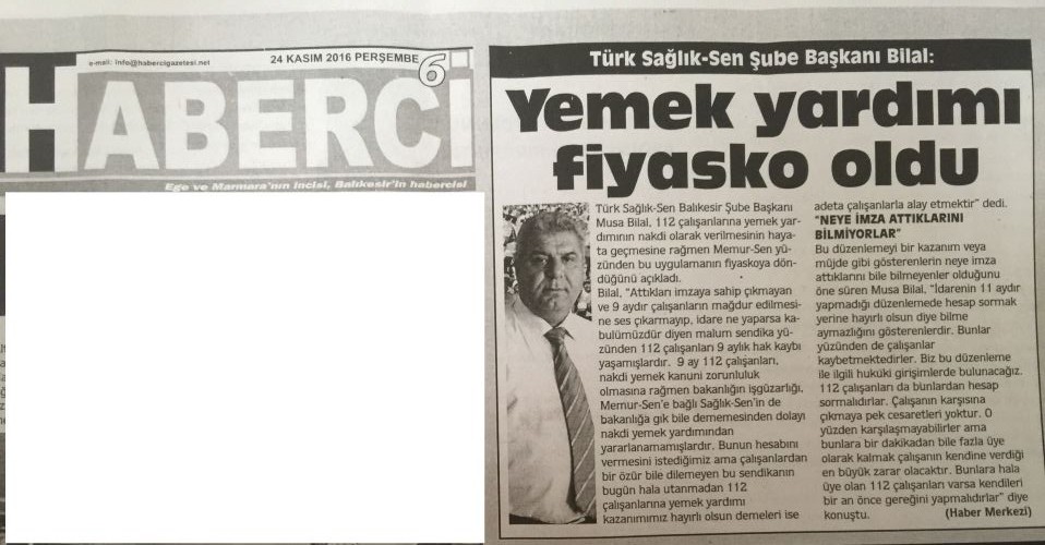 Bunun hesabını vermesini istediğimiz ama çalışanlardan bir özür bile dilemeyen bu sendikanın bugün hala utanmadan 112 çalışanlarına yemek yardımı kazanımımız hayırlı olsun demeleri ise adeta çalışanlarla alay etmektir.