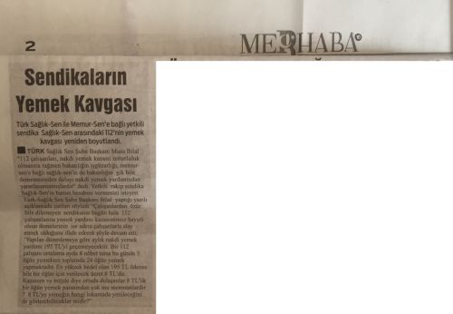 9 ay 112 çalışanları, nakdi yemek kanuni zorunluluk olmasına rağmen bakanlığın işgüzarlığı, Memur-Sen’e bağlı Sağlık-Sen’in de Bakanlığa gık bile dememesinden dolayı nakdi yemek yardımından yararlanamamışlardır.