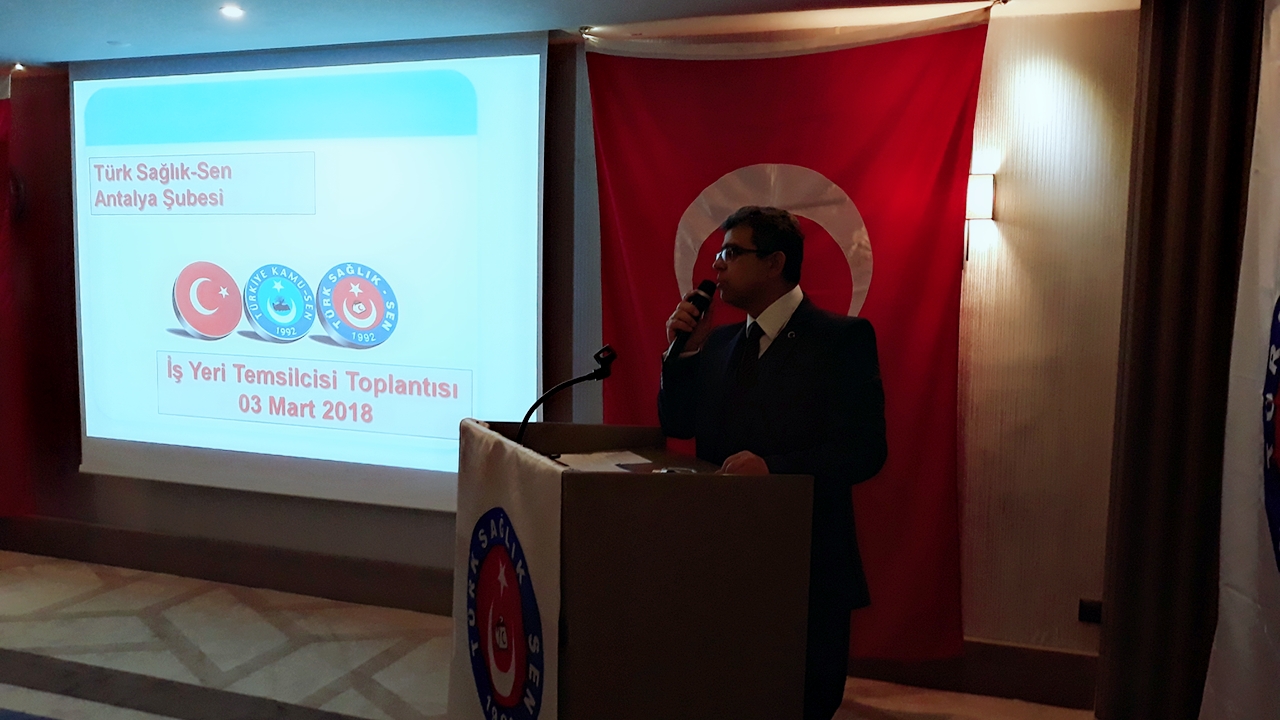 Türk Sağlık-Sen Antalya Şubesi Başkanı, yönetim kurulu üyeleri ve değerli temsilcileri olarak birlik ve beraberliğimizin ilelebet daim kalacağını gösterdik. Şube Başkanımız yaptığı konuşmada ''Sendikamız için kilit noktada olan ve çalışanlarla bir araya gelen onlarla en çok vakit geçiren teşkilat mensubumuz olarak iş yeri temsilcilerimiz daima kendilerini geliştirmeli ve öğrenmeye her daim açık olmalıdır. Sendikal mücadelemizin kıymetlileri olan iş yeri temsilcilerimizin çalışanla geçirdiği vakti, öğrendiği ve aktardığı her yeni bilgiyi, yaptığı her görüşmeyi en önemli sendikal faaliyet olarak görmekteyiz'' diye dikkat çekti.