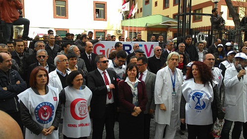 13 Mart İş Bırakma Eyleminde Türk Sağlık-Sen İzmir 1 Nolu Şube Başkanı Ahmet DOĞRUYOL’un Basın Açıklaması Metnidir.