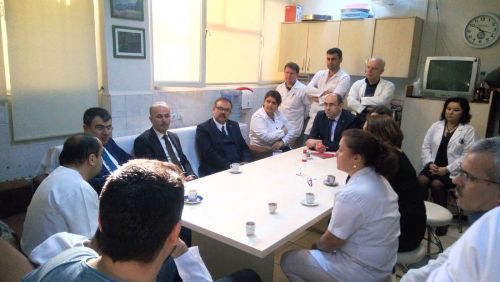06.02.2019 tarihinde gerçekleştirilen ziyarette Dokuz Eylül Üniversitesi Hastanesi Başhekimi Sayın Prof. Dr. Nurettin ÜNAL, Ege Üniversitesi Hastanesi Başhekimi Prof. Dr. Tuncay GÖKSEL, Ege Üniversitesi Tıp Fakültesi Dekanı Prof. Dr. Cemil GÜRGÜN makamında ziyaret edilerek sağlık çalışanlarımızın talepleri ve sorunları iletildi, çözüm talep edildi.