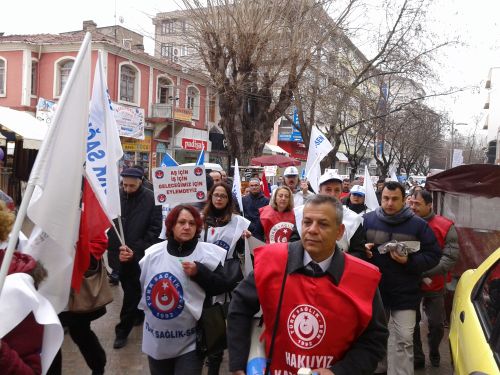 Sağlık çalışanları olarak ne lütuf bekliyoruz, ne de karşılanamaz talepleri dile getiriyoruz. Sadece hakkımızı talep ediyoruz. Haklı taleplerimizi dile getirmek ve çalışanların talepleri karşısındaki vurdumduymazlığa tepki olarak Tıp Bayramı Arifesinde 13 Martta iş bırakıyoruz.