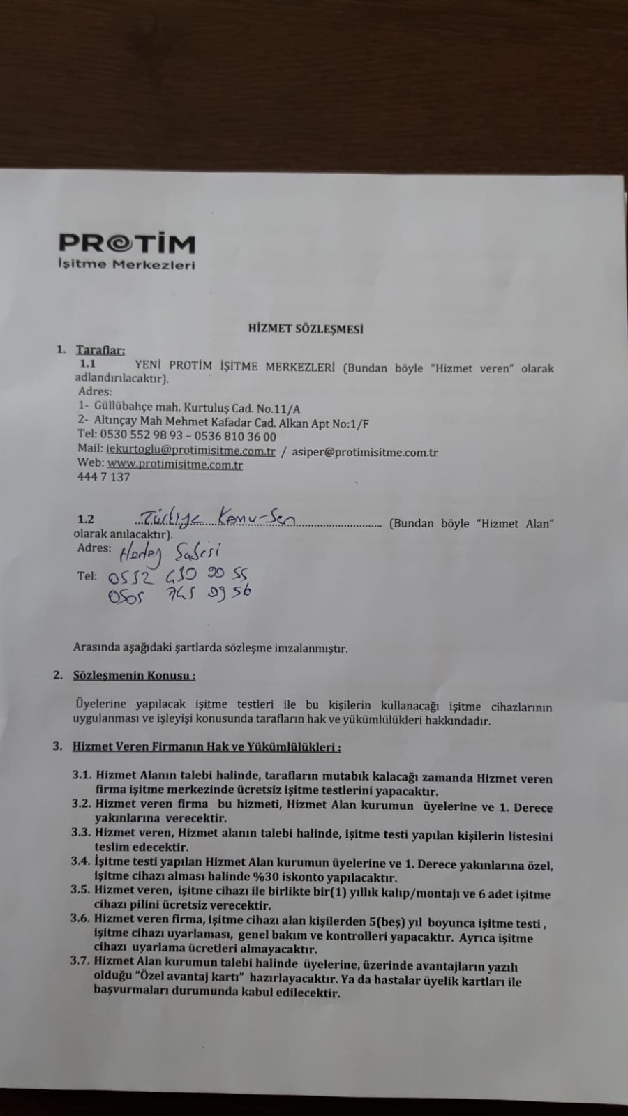 TÜRKİYE KAMU-SEN OLARAK PROTİM İŞİTME MERKEZLERİ HATAY İŞLETMELERİ OLARAK TÜRKİYE KAMU-SEN VE ÇATISI ALTINDAKİ TÜM SENDİKALAR İLE İŞİTME CİHAZI ALIMLARINDA %30 İNDİRİM HAKKI VE BİR ÇOK AYRICALIKLARI İÇEREN SÖZLEŞME İMZALADIK. İMZA SONRASI AÇIKLAMA YAPANHATAY İL BAŞKANIMIZ SAYIN ŞAHİN , KAMU-SEN AİLESİNE BAĞLI SENDİKA BASKANLARİMİZA AYRI AYRI TEŞEKKÜR EDER SÖZLEŞMENİN HAYIRLI OLMASINI DİLERİZ. DEDİ.