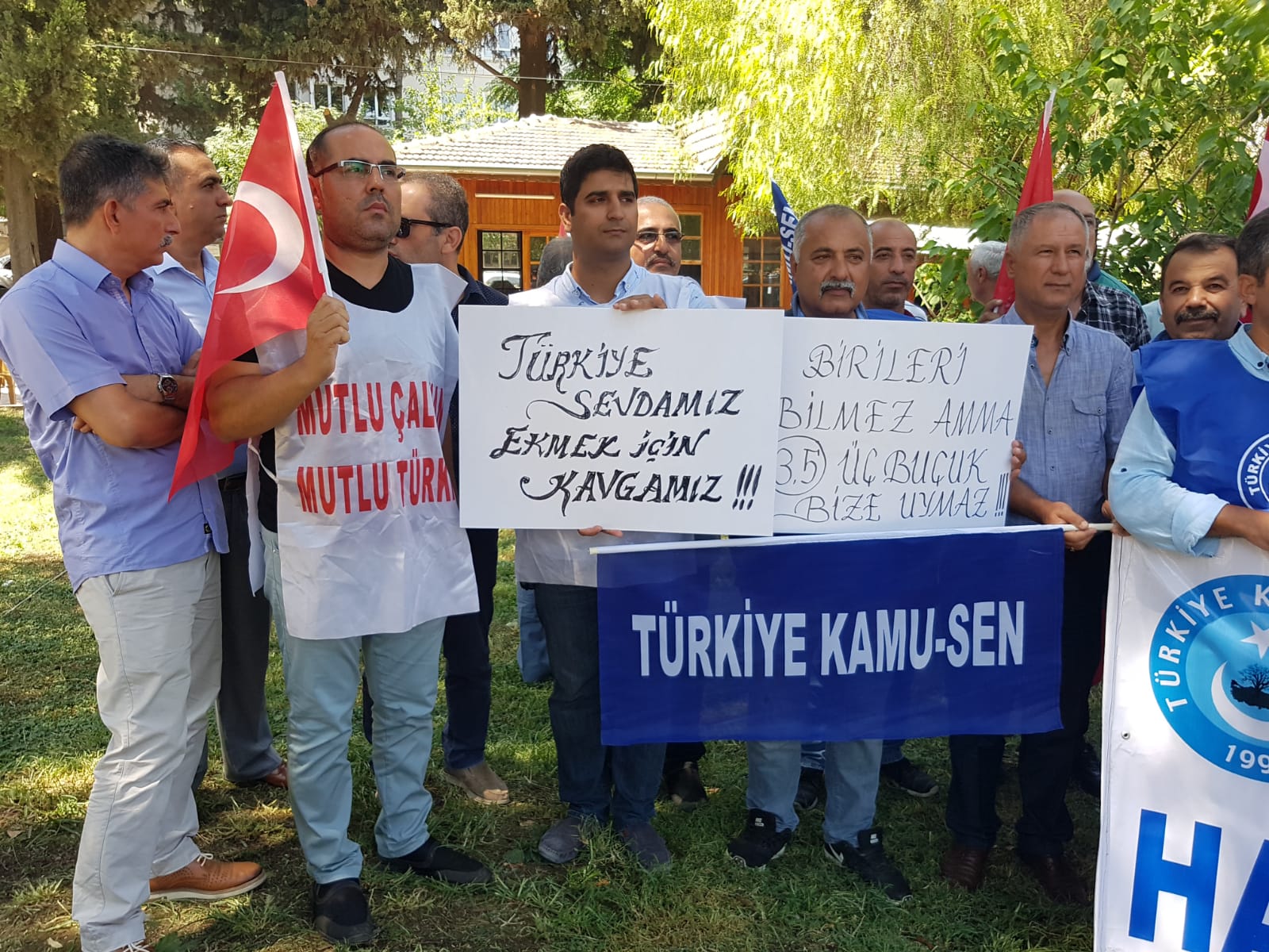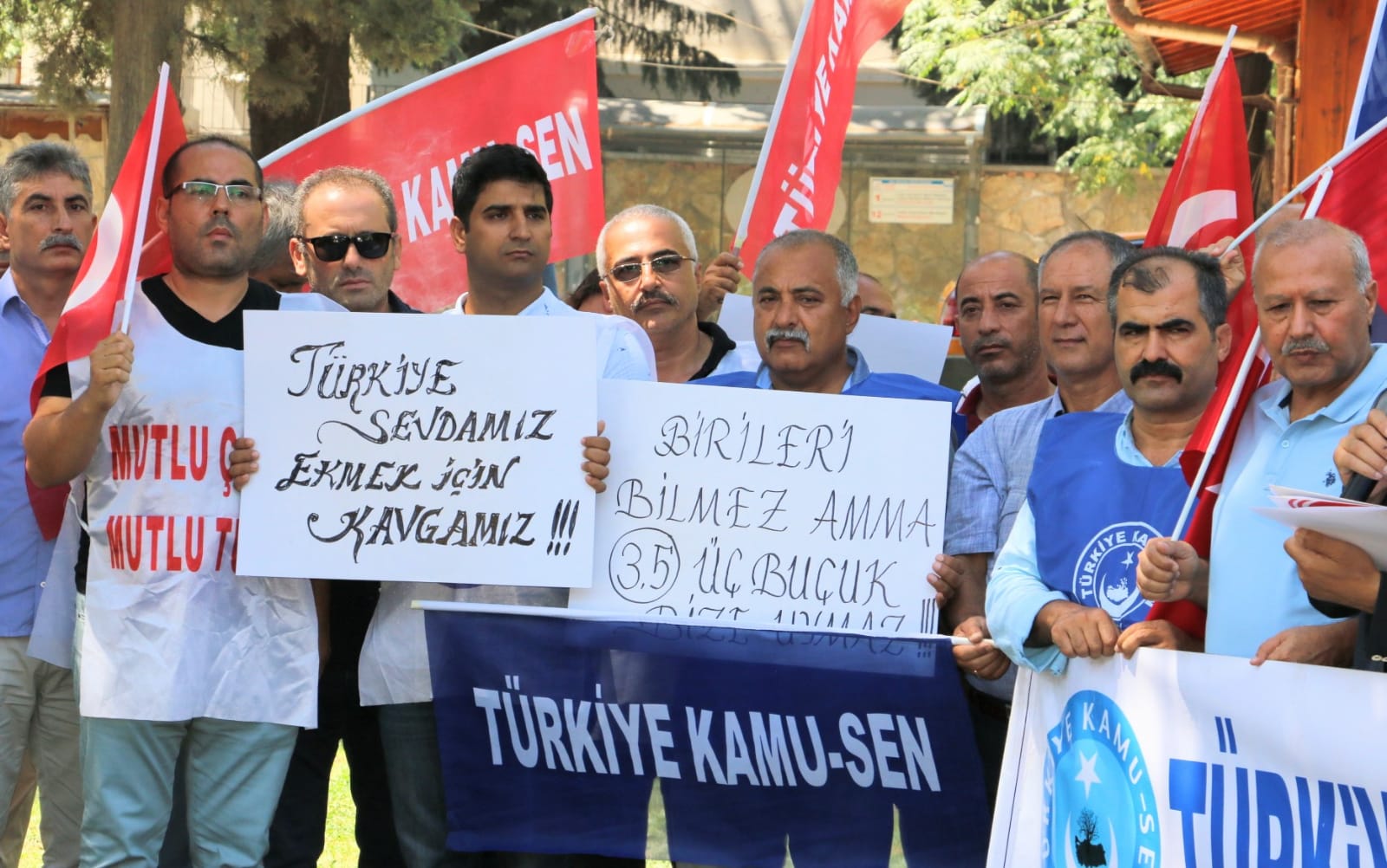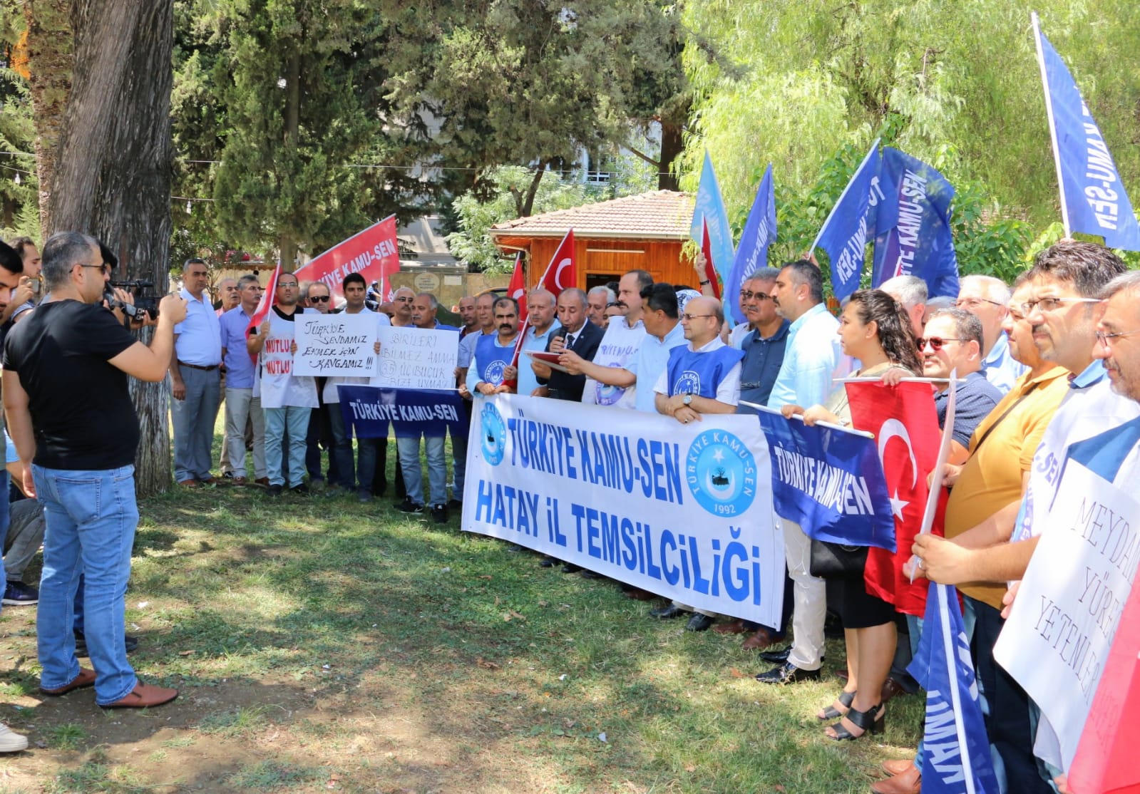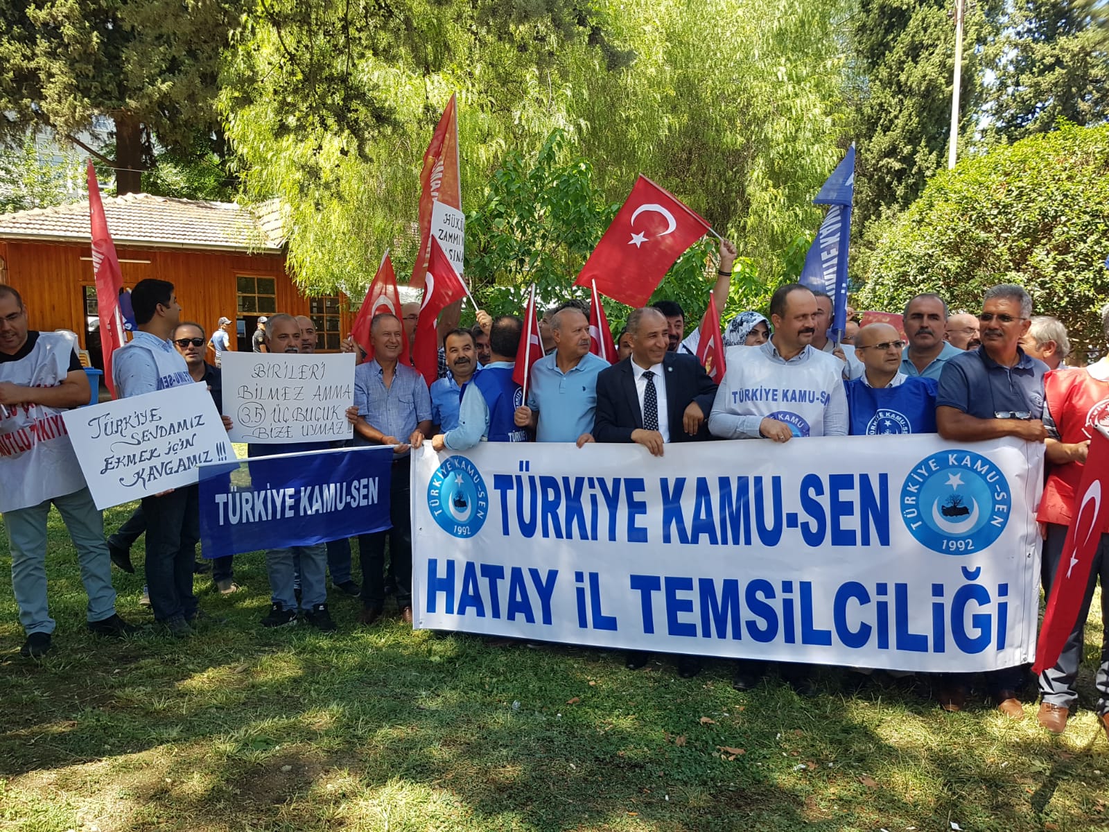 Hükümetin memura teklif ettiği zam oranlarını Hatay Vali Göbeği önünde tüm illerimiz ile birlikte eş zamanlı olarak protesto ettik.