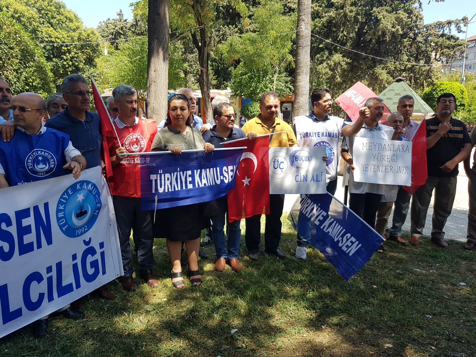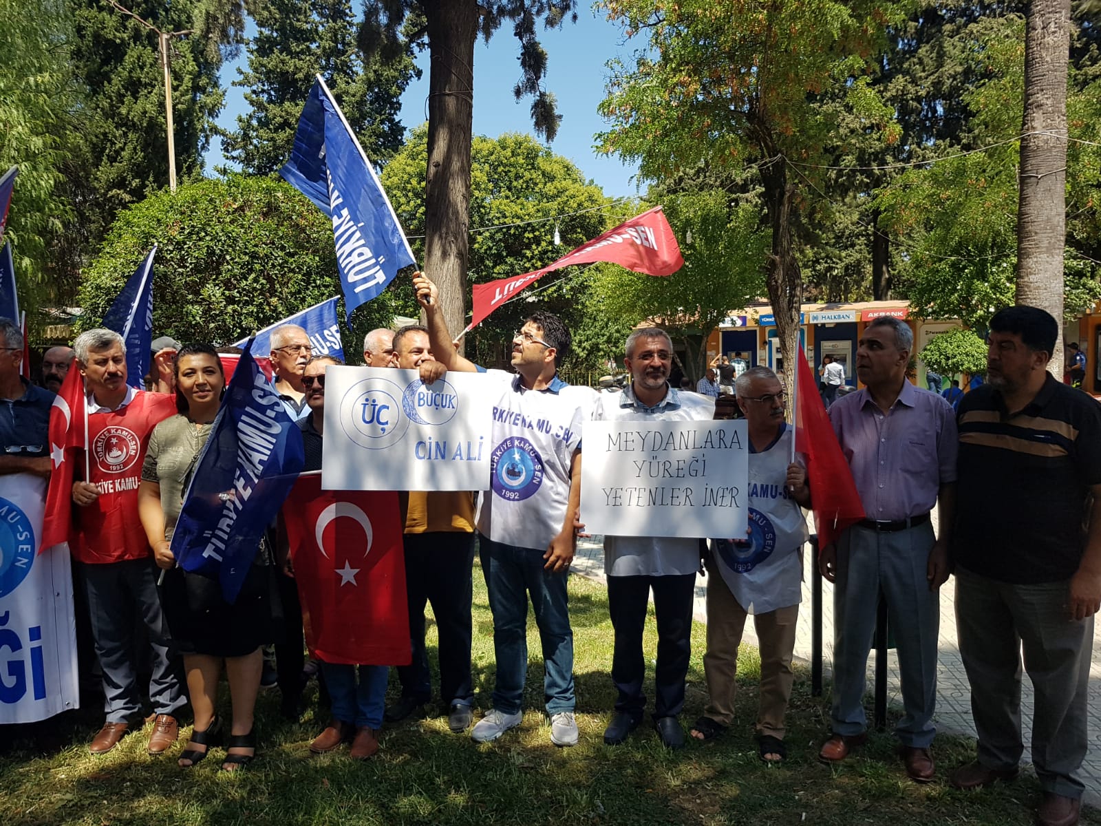 Katılımcıların attığı “Sarı sendika istemiyoruz” sloganları ile inleyen Vali Göbeği önünde hazırlanan sarı balonlar da patlatılarak, yetkili konfederasyona “Masada memuru pazarlamayın” uyarısında bulunuldu.