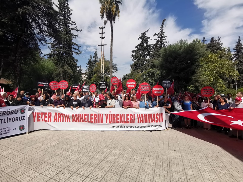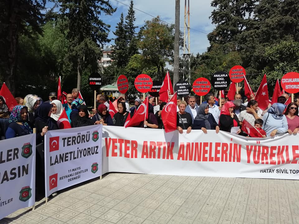 Hatay Kamu-Sen olarak, Hatay'daki Sivil Toplum Kuruluşlarıyla, terör örgütü PKK tarafından çocuklarının dağa kaçırılmasından HDP'yi sorumlu tutarak, HDP Diyarbakır İl Başkanlığı binası önünde OTURMA EYLEMİ yapan annelere Vali Göbeğindeki basın açıklamasıyla destek verdik.