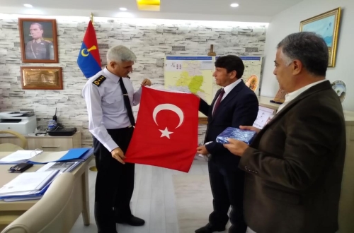 İl Temsilcimiz, Alay komutanımıza Barış Pınarı Oprerasyonu hatırası olarak Türk Bayrağı ve Kuran-ı Kerim hediye etti. Alay komutanımıza ilimizde yapacağı görevde başarılar diledi.