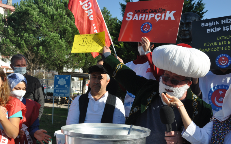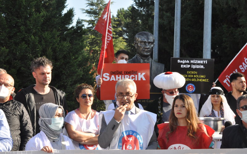 Sağlık Çalışanlarının Ekonomik sosyal Haklarının iyileştirilmesi ve Milli gelirden payına düşenin alınabilmesi SBU Derince Eğitim Araştırma Hastanesi Türk Sağlık Sen Kocaeli Şube Başkanı, üyelerin katılımı ile basın açıklaması yaptı.