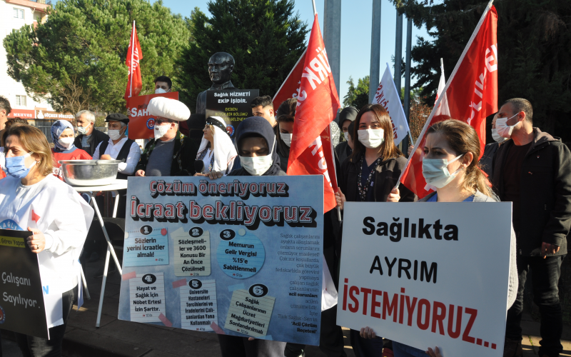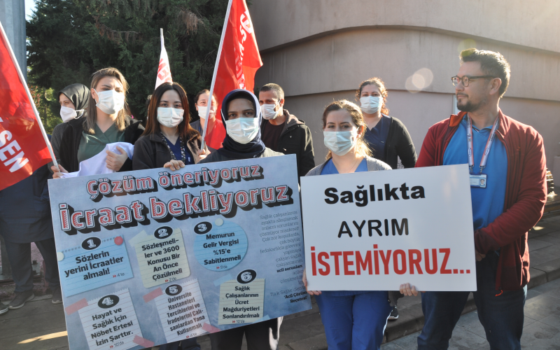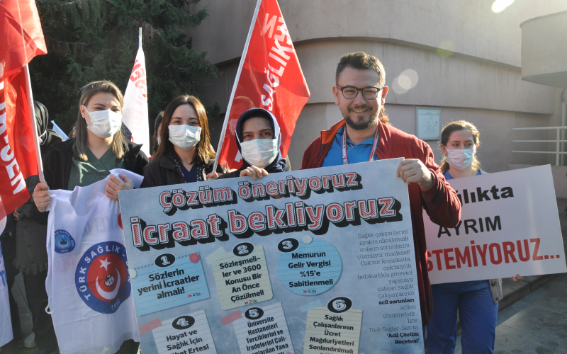 DÖVİZ: Türk Sağlık-Sen Kocaeli Şubesi üyeleri