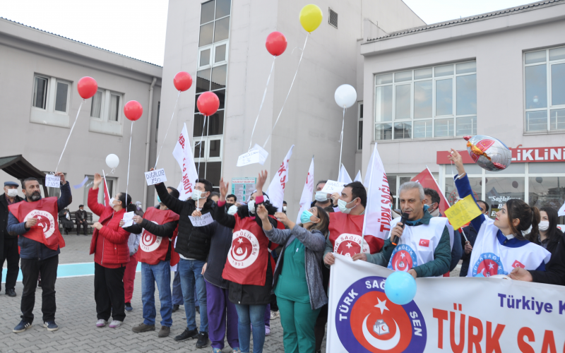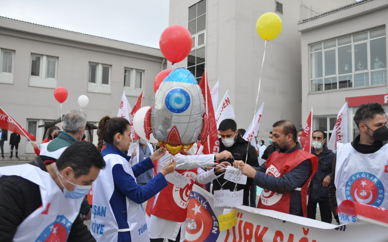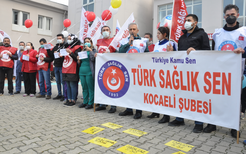 Türk Sağlık Sen Kocaeli Şube Başkanı Ömer Çeker’in memur zammı hakkında SBU Darıca Farabi Eğittim ve Araştırma Hastanesi Önünde yapmış olduğu basın açıklaması metni.
