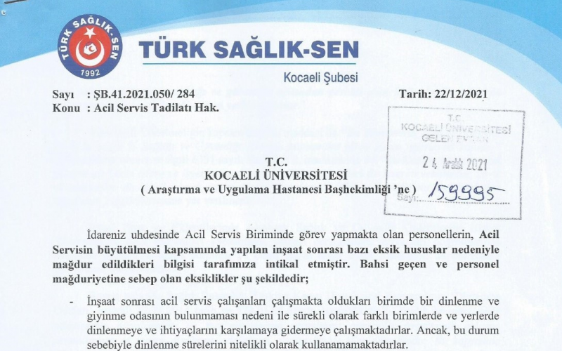 kez daha çağrıda bulunuyor ve Acil Serviste görevli 100’ü aşkın çalışanın rahat