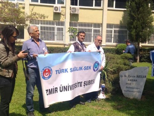 17 Nisan 2012 tarihinde Gaziantep’te görevi başında hasta yakını tarafından katledilen görev şehidimiz Dr. Ersin ASLAN ‘ı,İzmir Tabip Odası, STK’ lar ve çalışanlarla beraber Dokuz Eylül Hastanesi bahçesindeki temsili anıtı önünde andık.