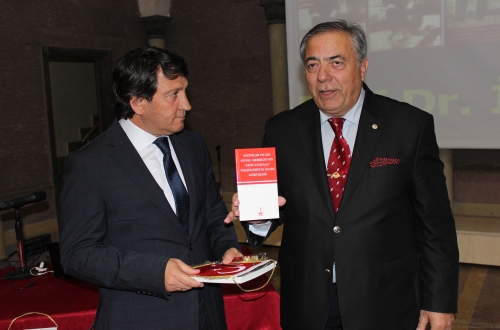 Daha sonra Prof. Dr. İbrahim Öztek hocamız konuşmasına başlamadan önce kendi yazmış olduğu kitaplardan birkaç tanesini imzalayarak Türkiye Kamu- Sen İl Başkanı Turgay Çetin’e hediye ederek, “Asılsız Ermeni İddiaları' adlı konferansını sundu. Programın sonunda Türkiye Kamu-Sen Nevşehir İl Başkanı Turgay Çetin, prof. Dr. İbrahim Öztek’e günü anısına Türkiye Kamu-Sen desenli el emeği çini tabak hediye etti.